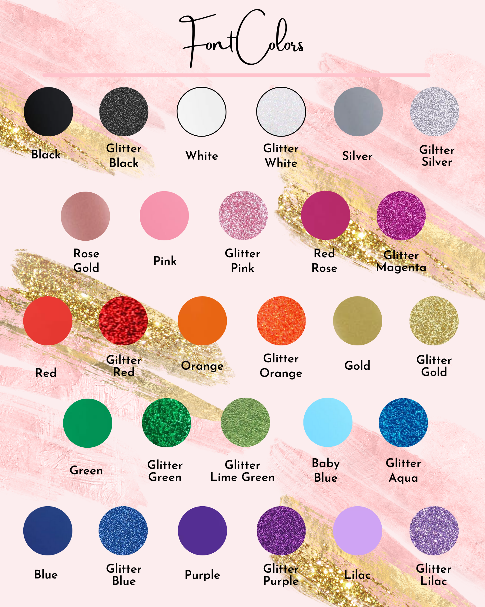 Enhance your custom text with a bold outline for extra visibility and style! The outline creates a beautiful contrast around the letters, making your text stand out more clearly against the background. Perfect for ensuring readability on glitter, patterned, or darker fabrics.
