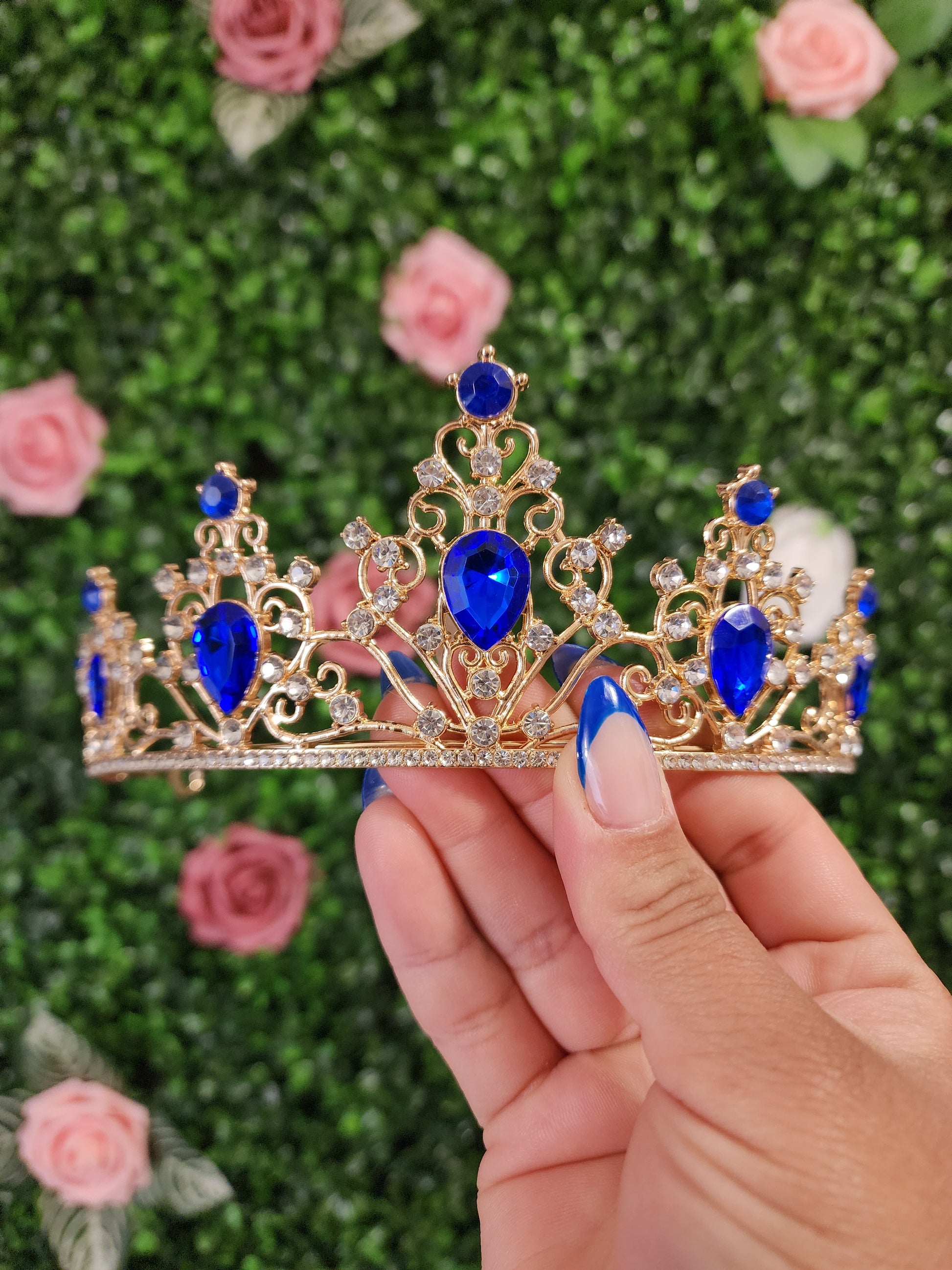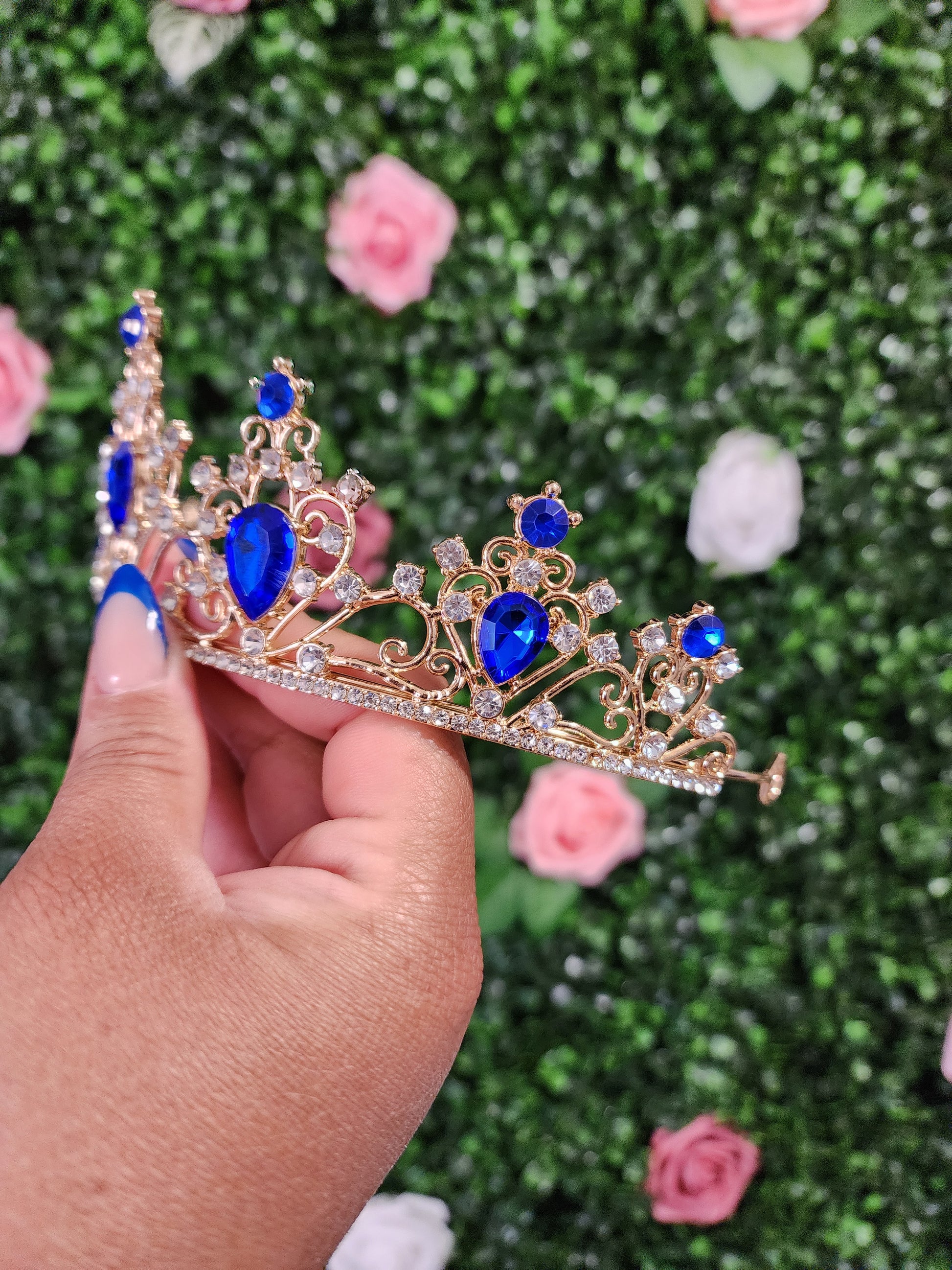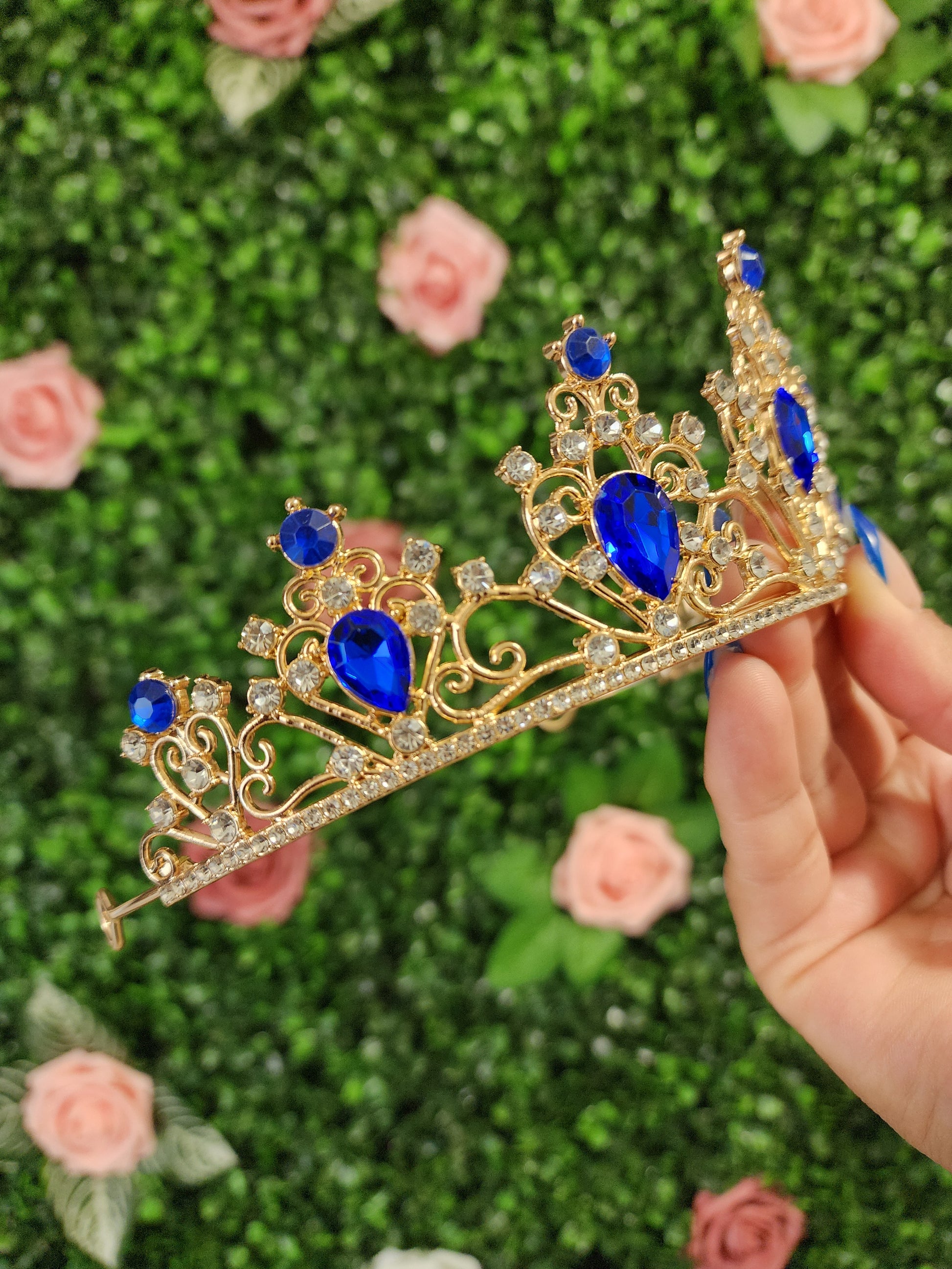 Gold Tiara with Blue & Silver Rhinestones (130)