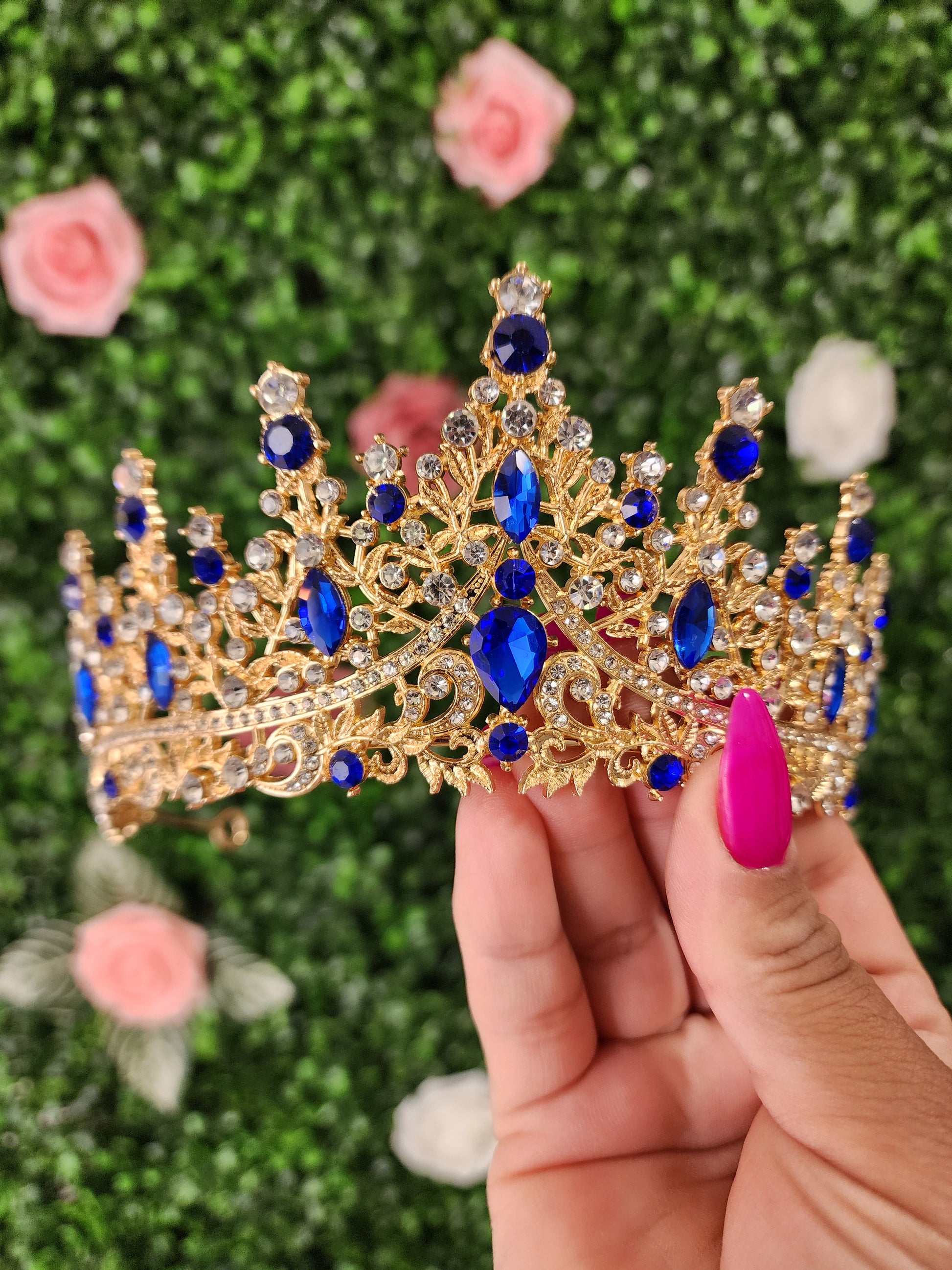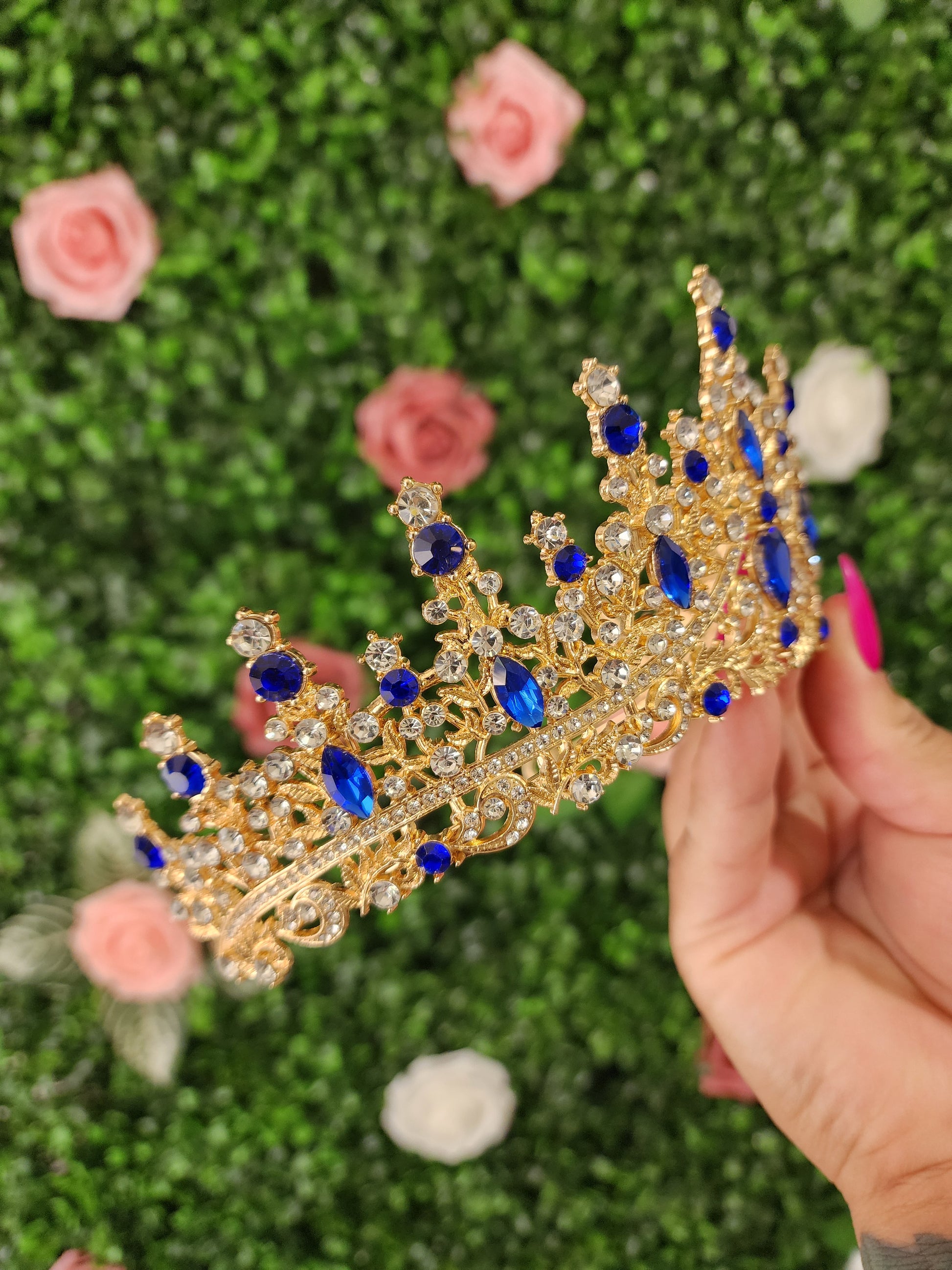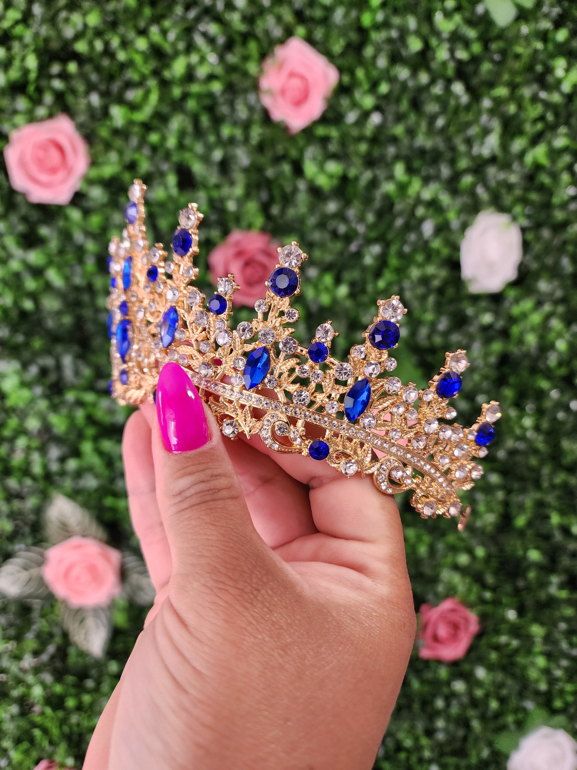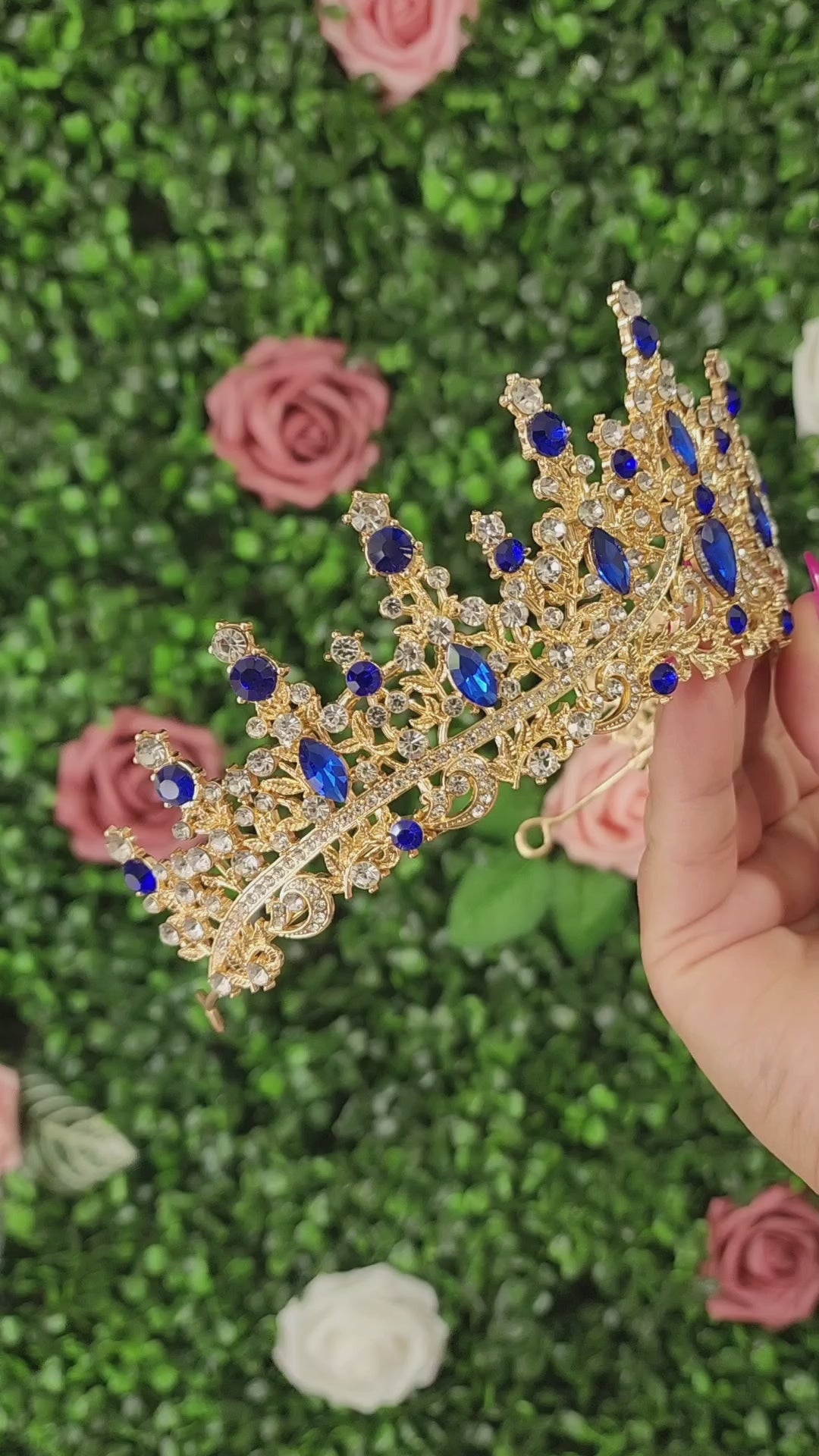 Elevate your style with this stunning tiara, adorned with enchanting blue and gold rhinestones. Each gem sparkles with celestial allure, casting a radiant glow that captures attention and inspires admiration. Perfect for adding a touch of royal elegance to any ensemble, this tiara embodies grace and sophistication, making every wearer feel like royalty.
