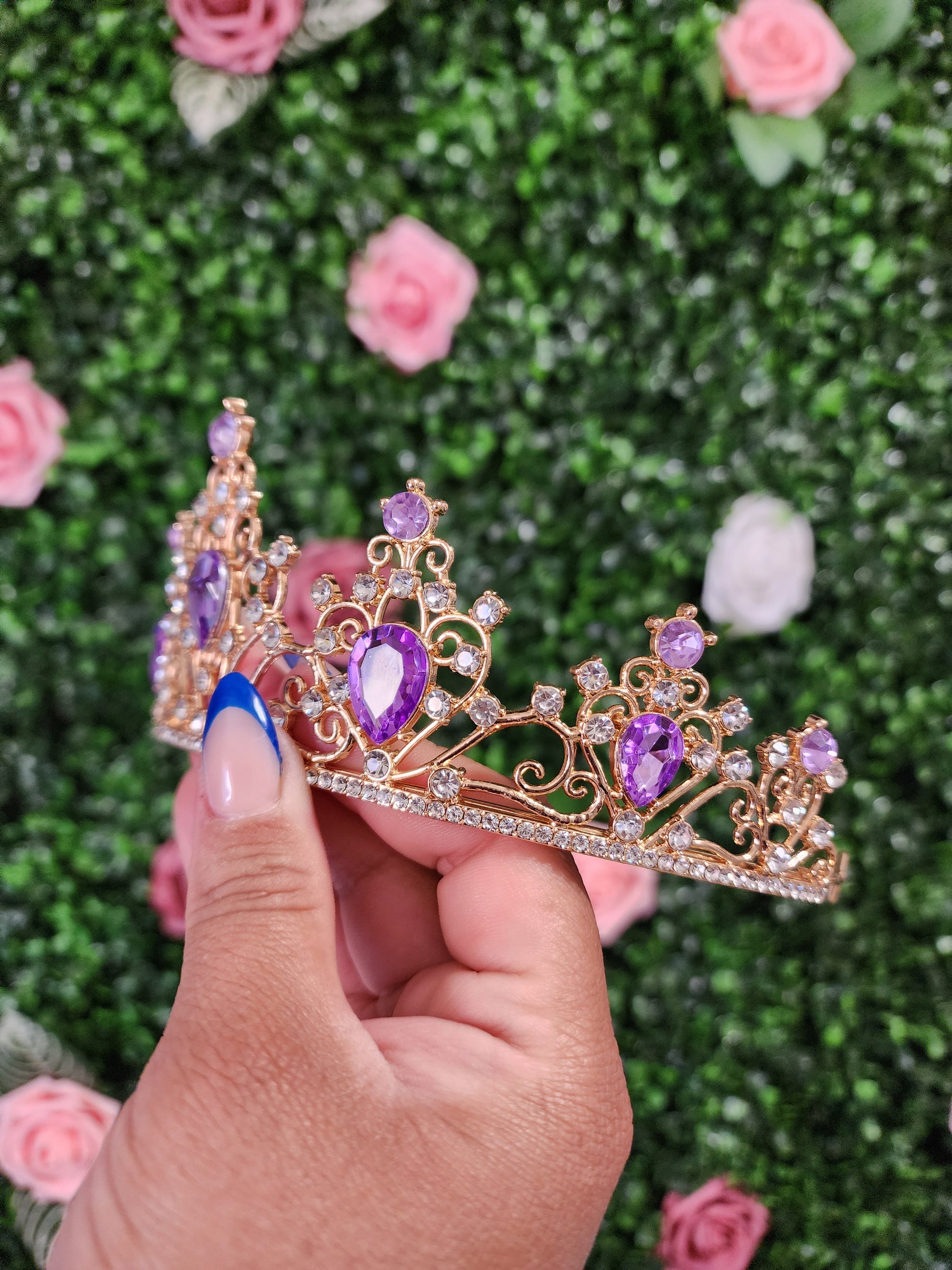 Gold Tiara with Lilac & Silver Rhinestones (277)
