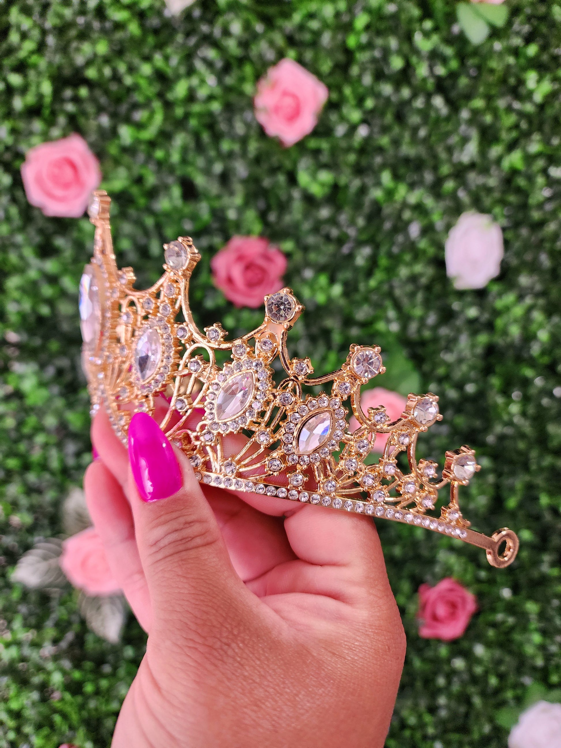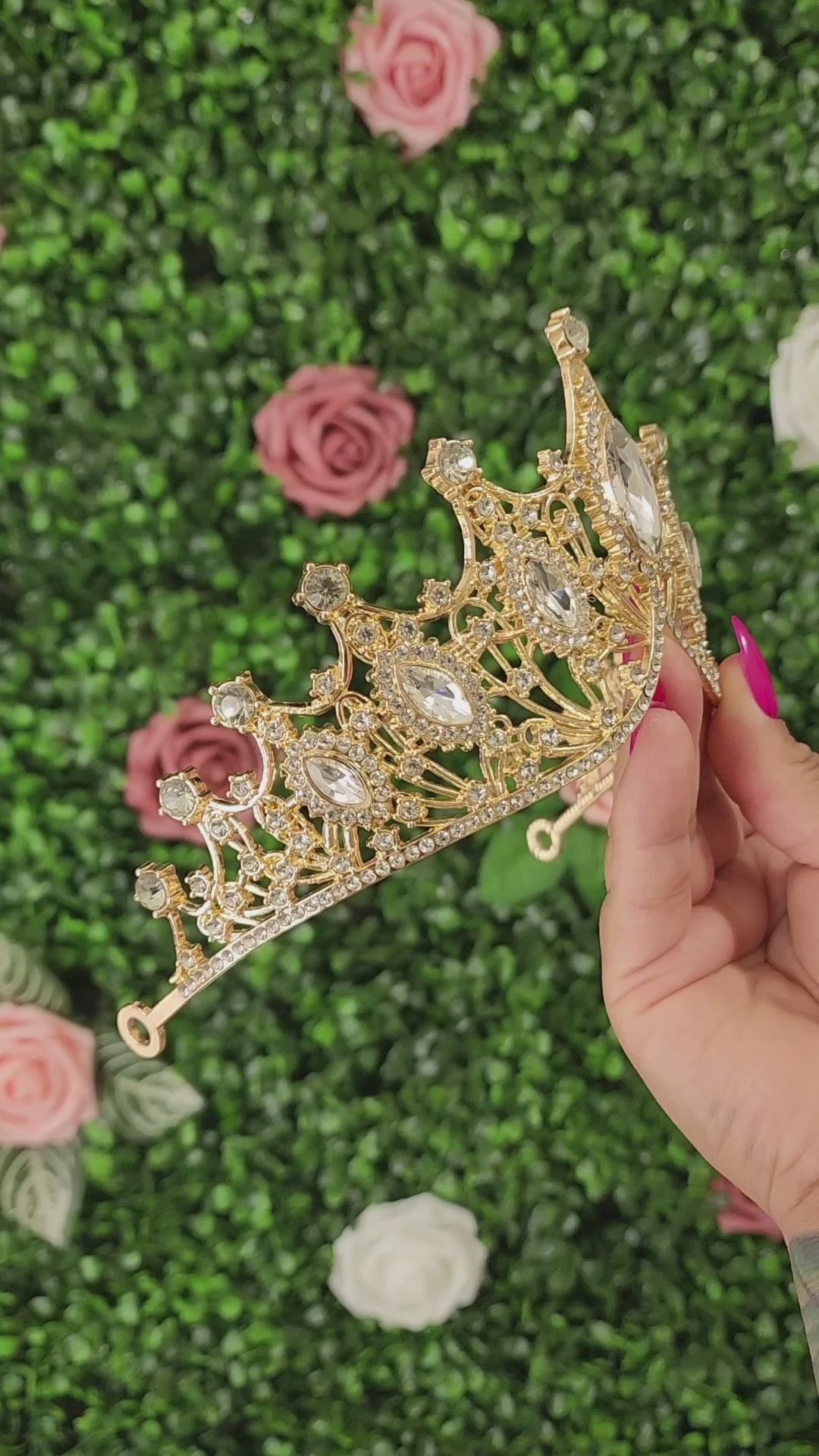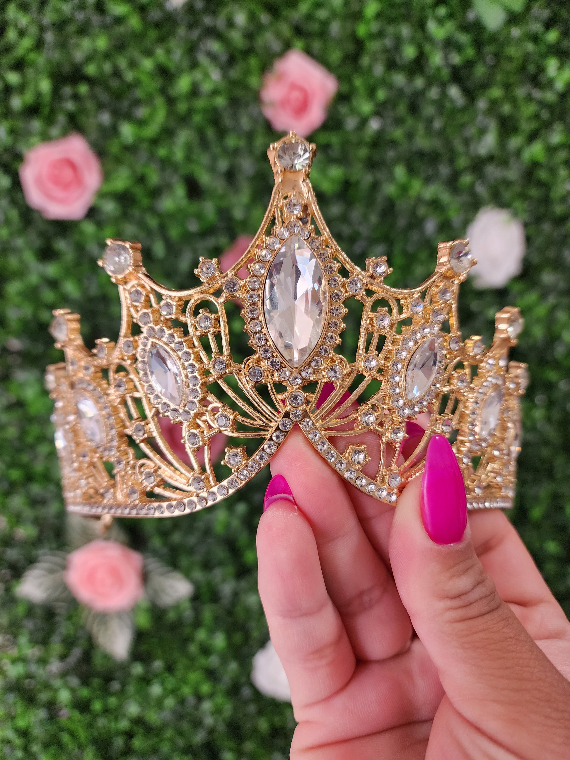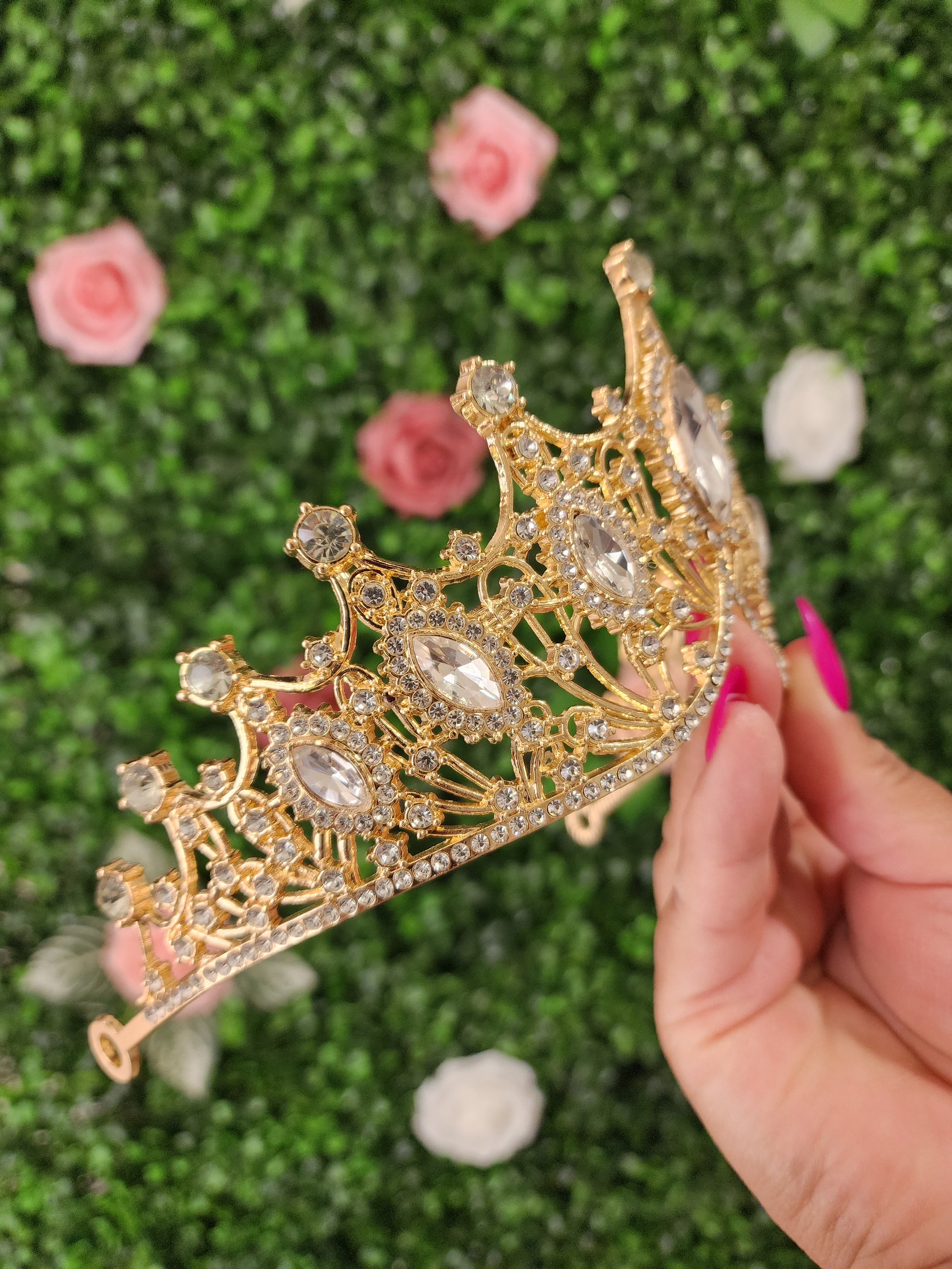 This gold and silver tiara is a captivating and enchanting headpiece that beautifully combines the timeless elegance of silver with refreshing and vibrant gold. This tiara gives a sense of sophistication and natural beauty, making it a striking accessory for various special occasions.