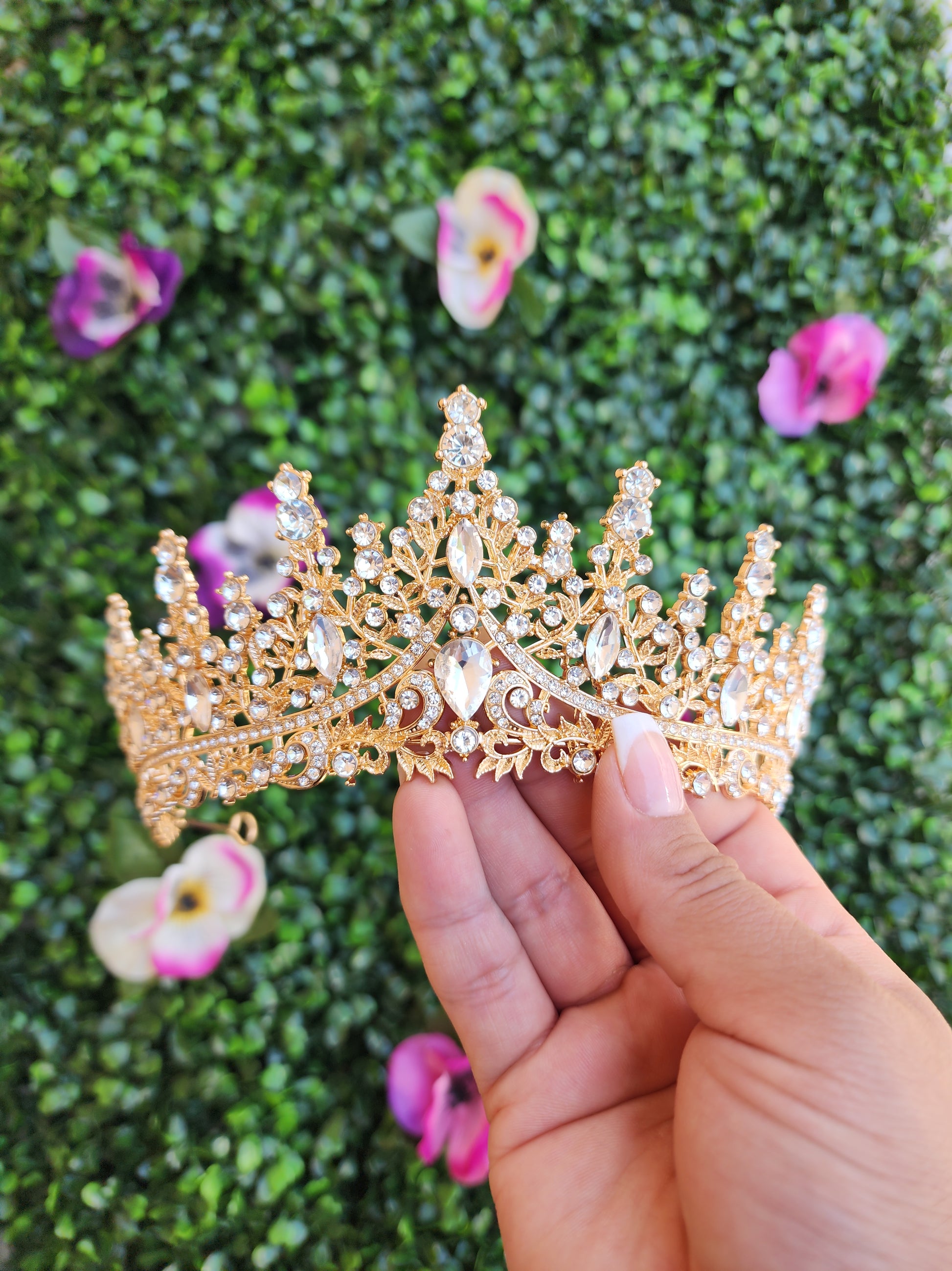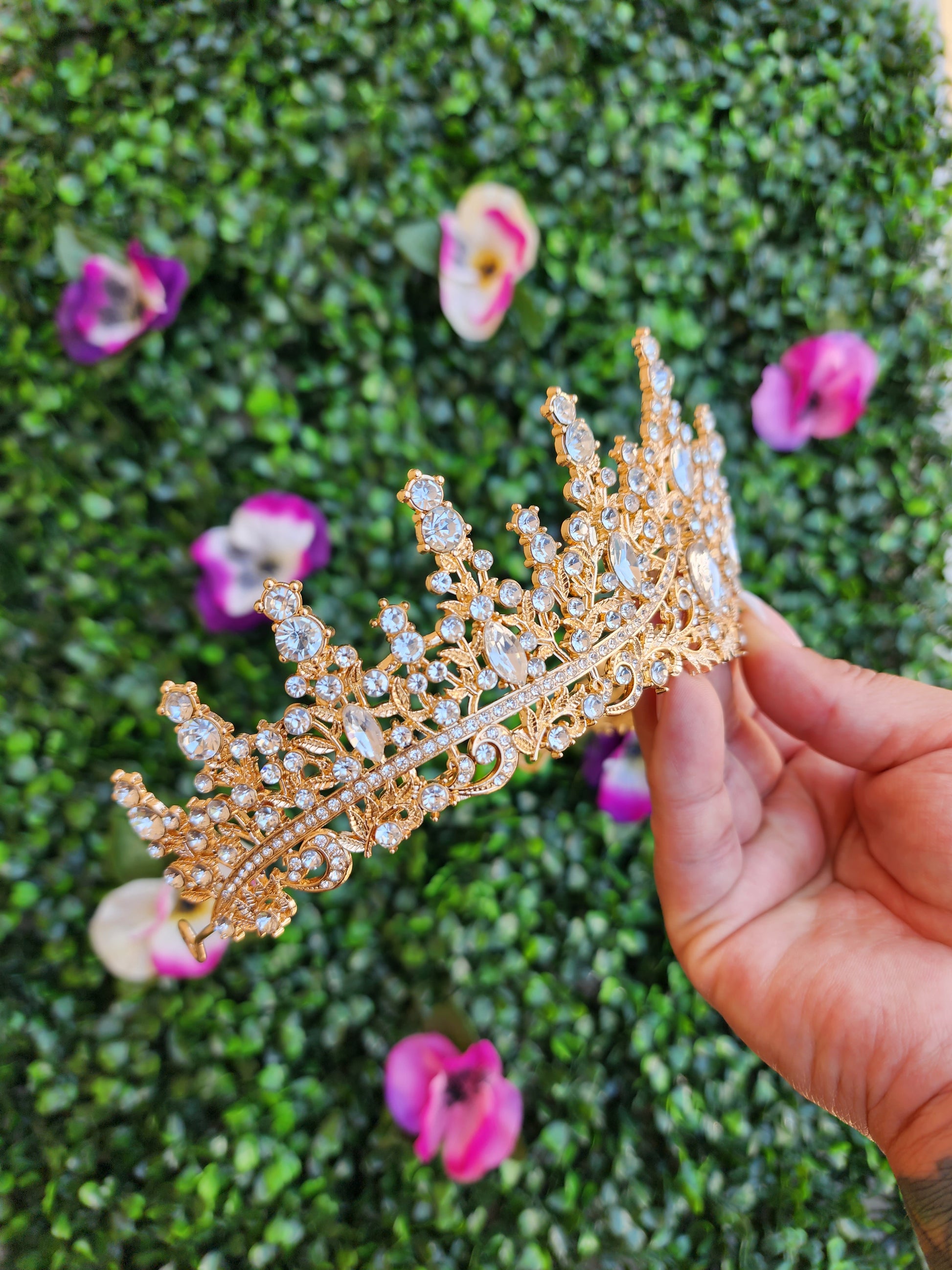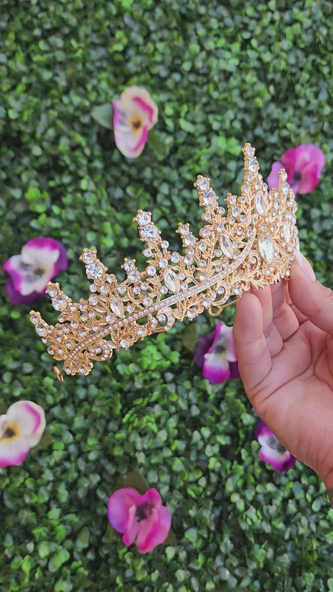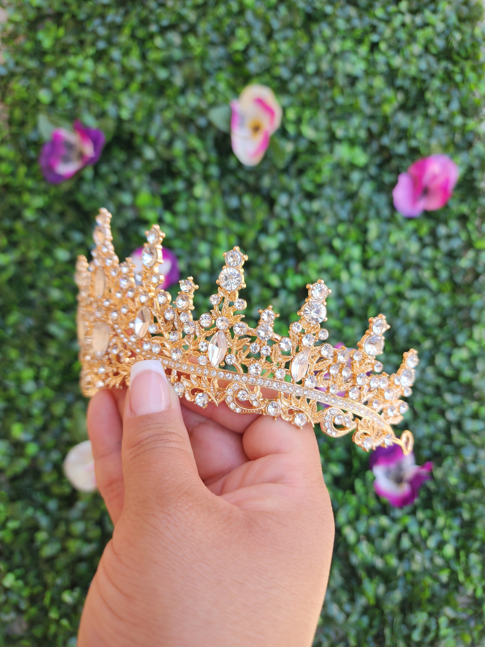 This gold and silver tiara is a captivating and enchanting headpiece that beautifully combines the timeless elegance of silver with refreshing and vibrant gold. This tiara gives a sense of sophistication and natural beauty, making it a striking accessory for various special occasions.
