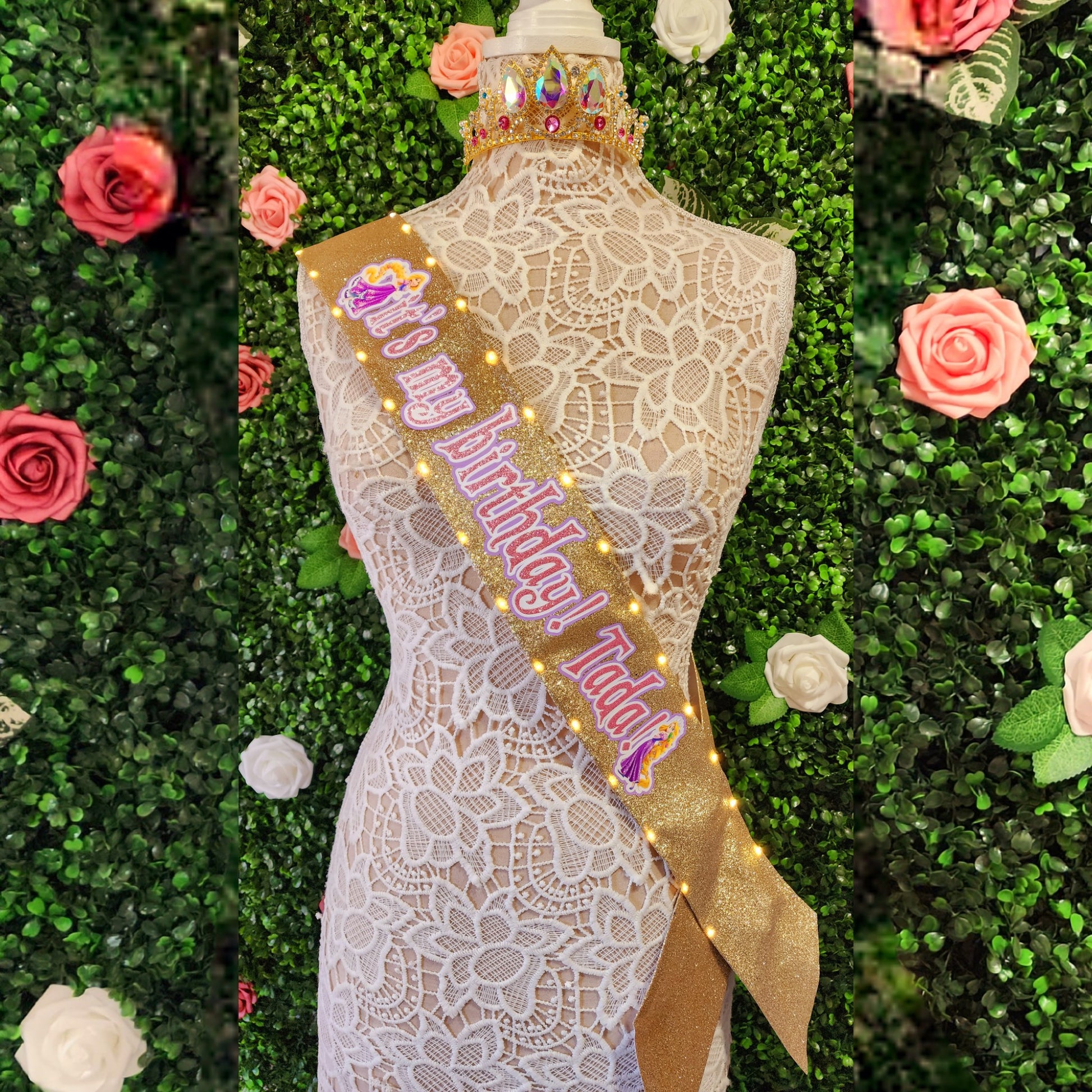 Golden Hair Princess Light-Up Birthday Sash | Light Up Birthday Celebration LED Party Accessory