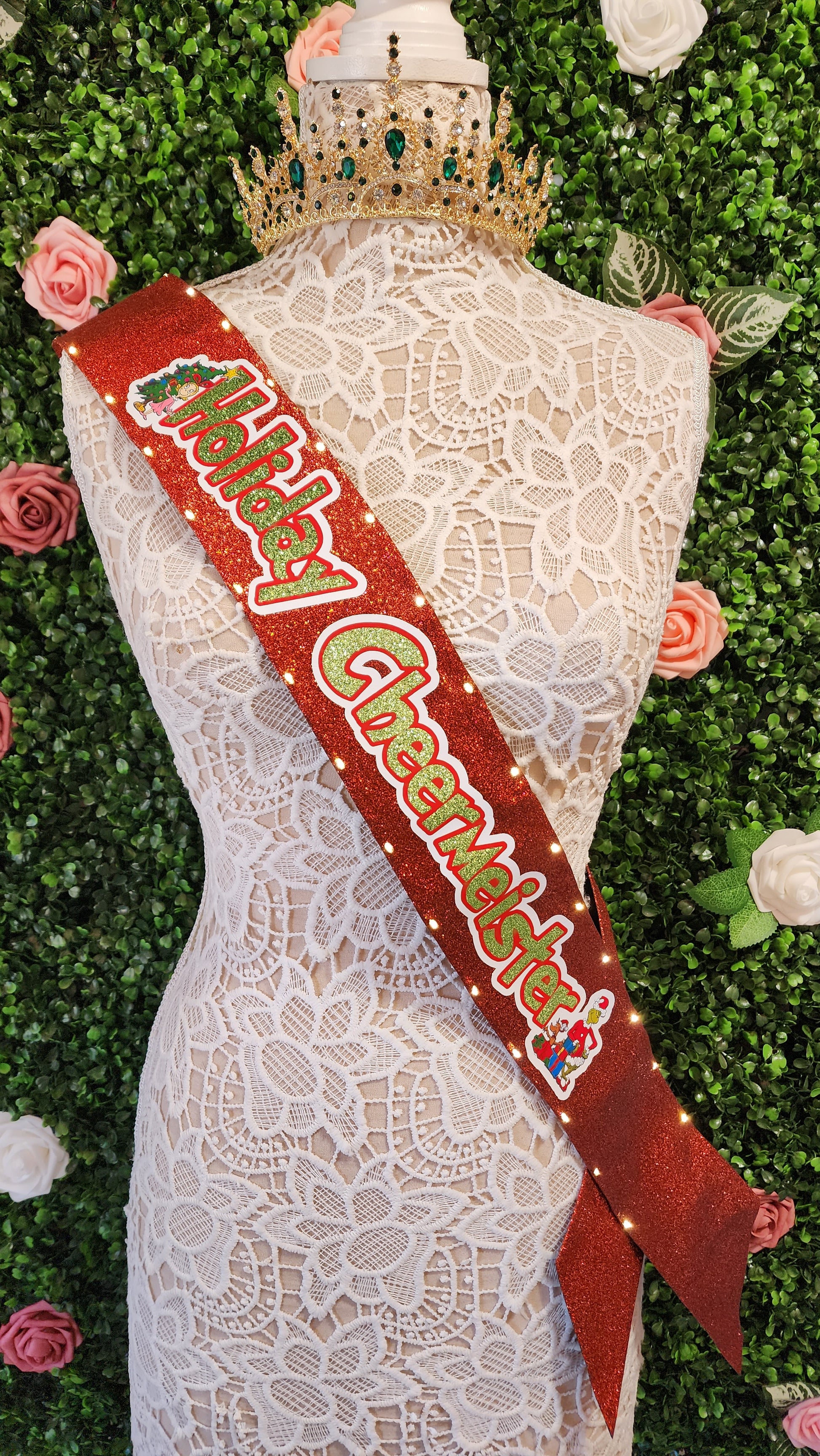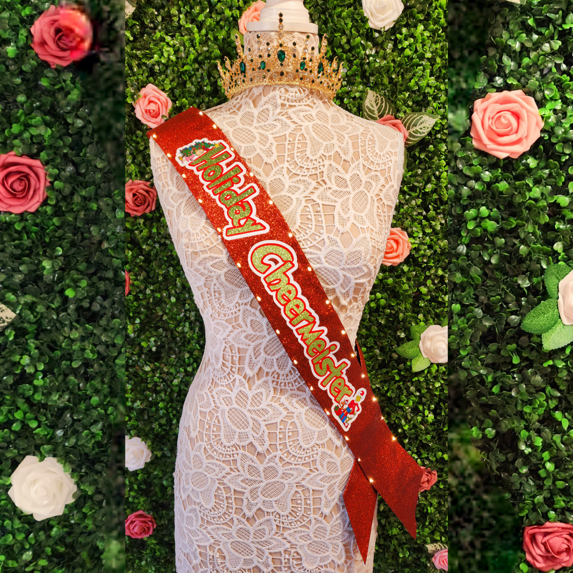 Holiday Cheermeister Light Up Sash | Birthday Party Sash, Christmas Birthday Accessory