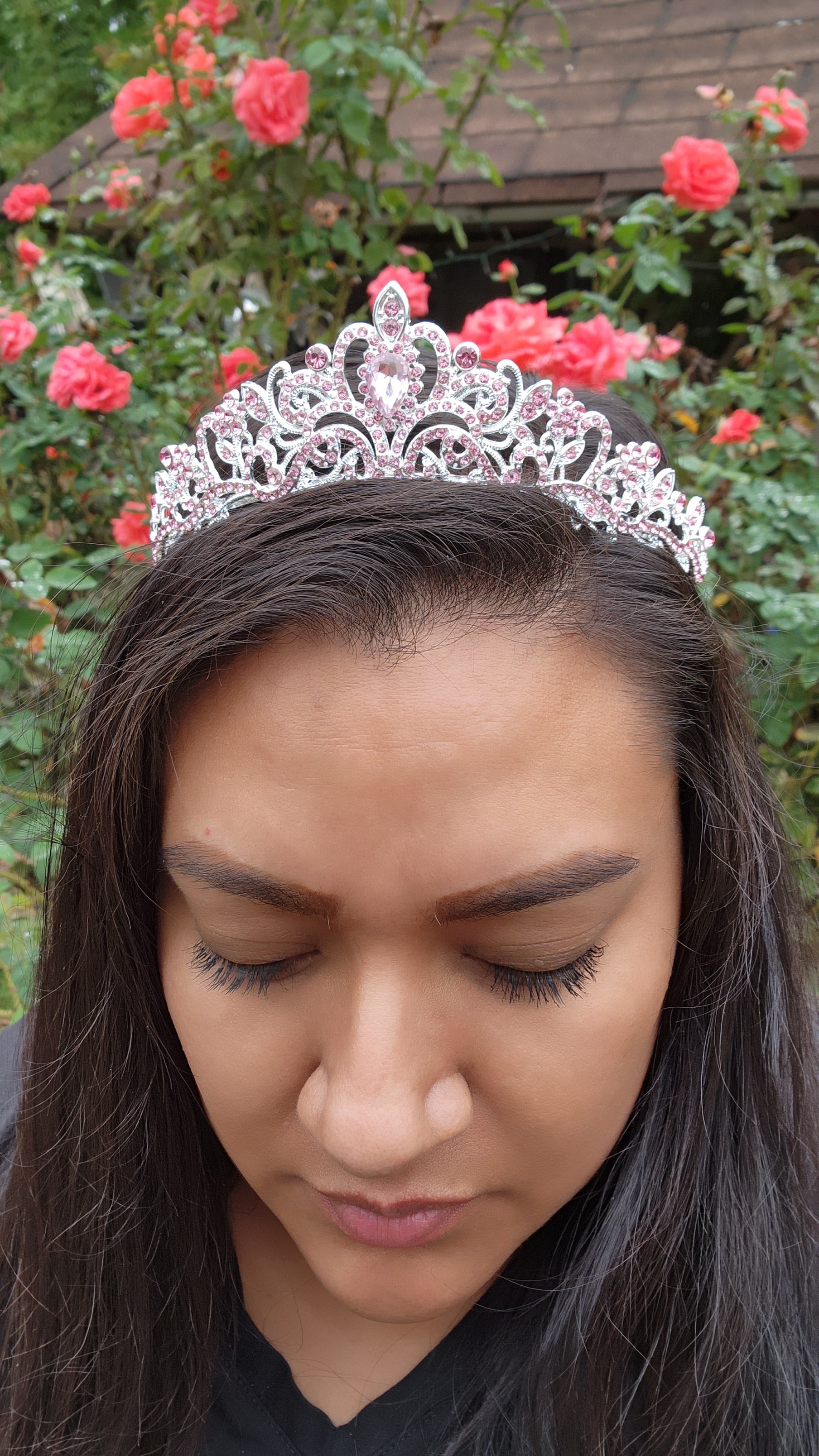The tiara is equipped with hair combs on both side, which are designed to easily slide into a child's hair, providing secure attachment.