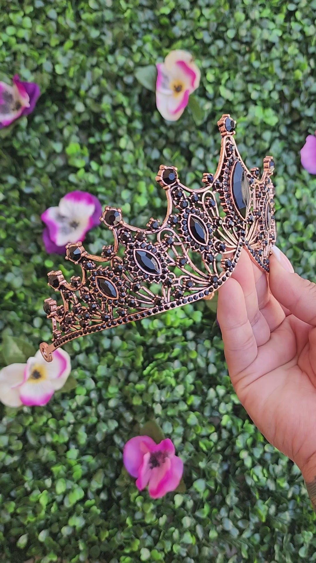 Rose Gold Tiara with Black Rhinestones (219)