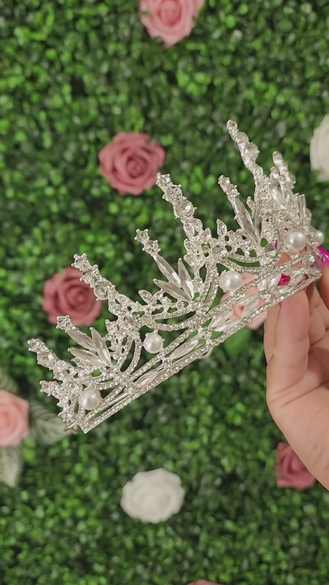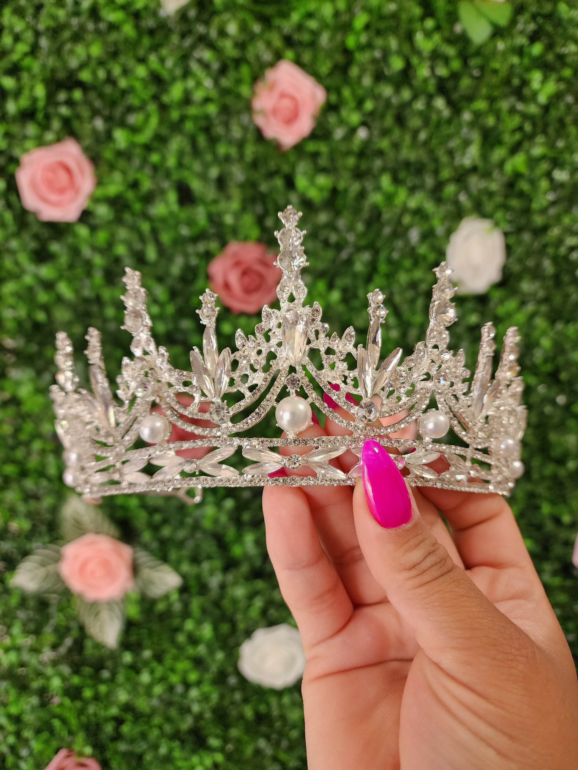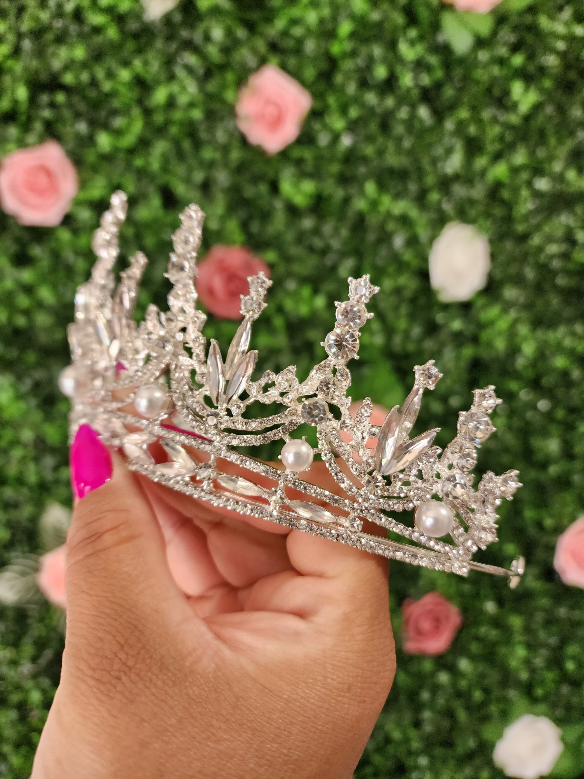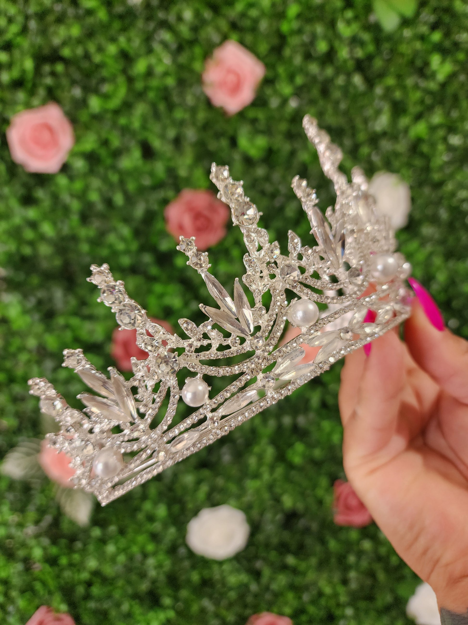 Silver Tiara with Silver Rhinestones & Faux Pearls (266)