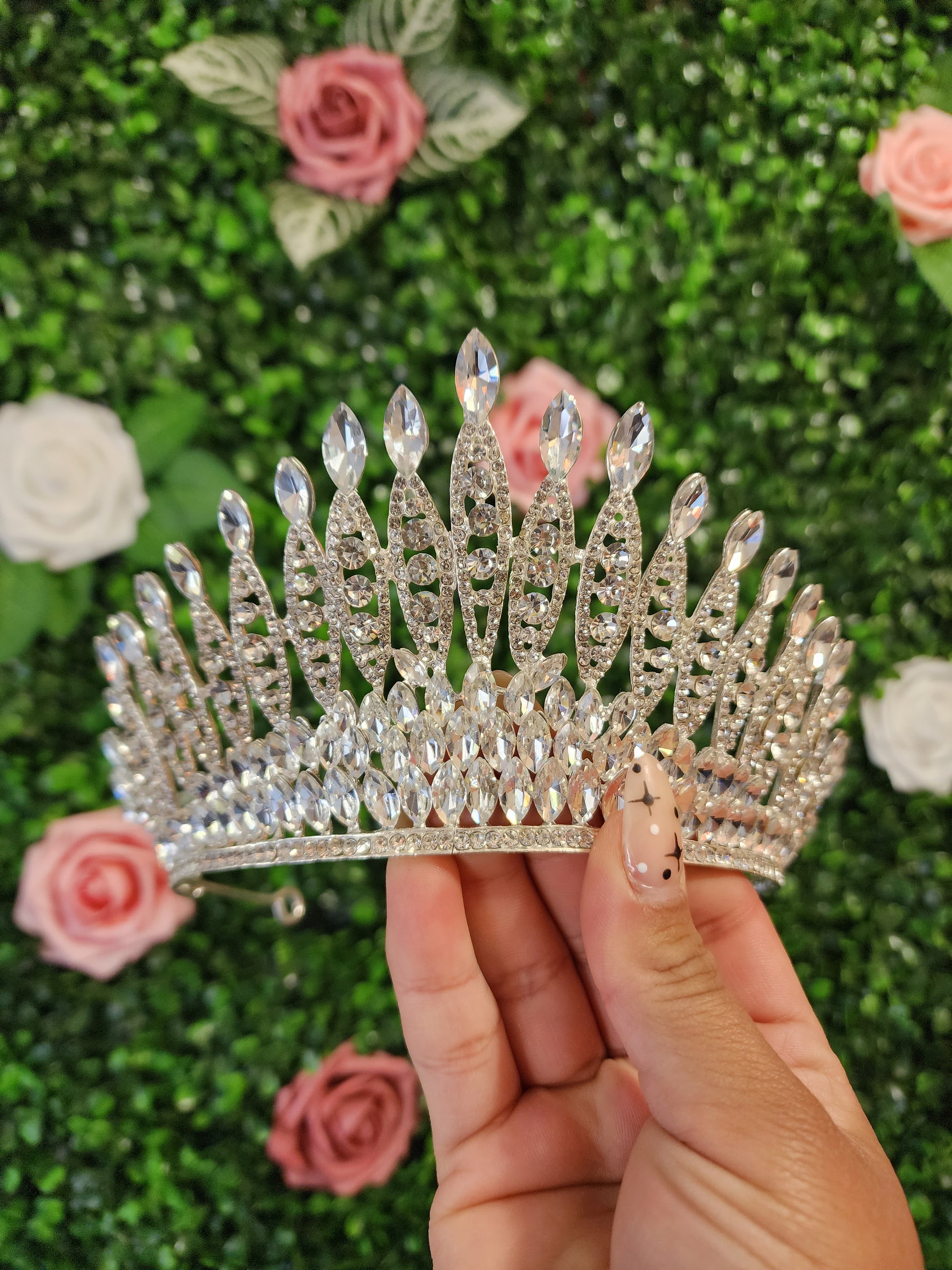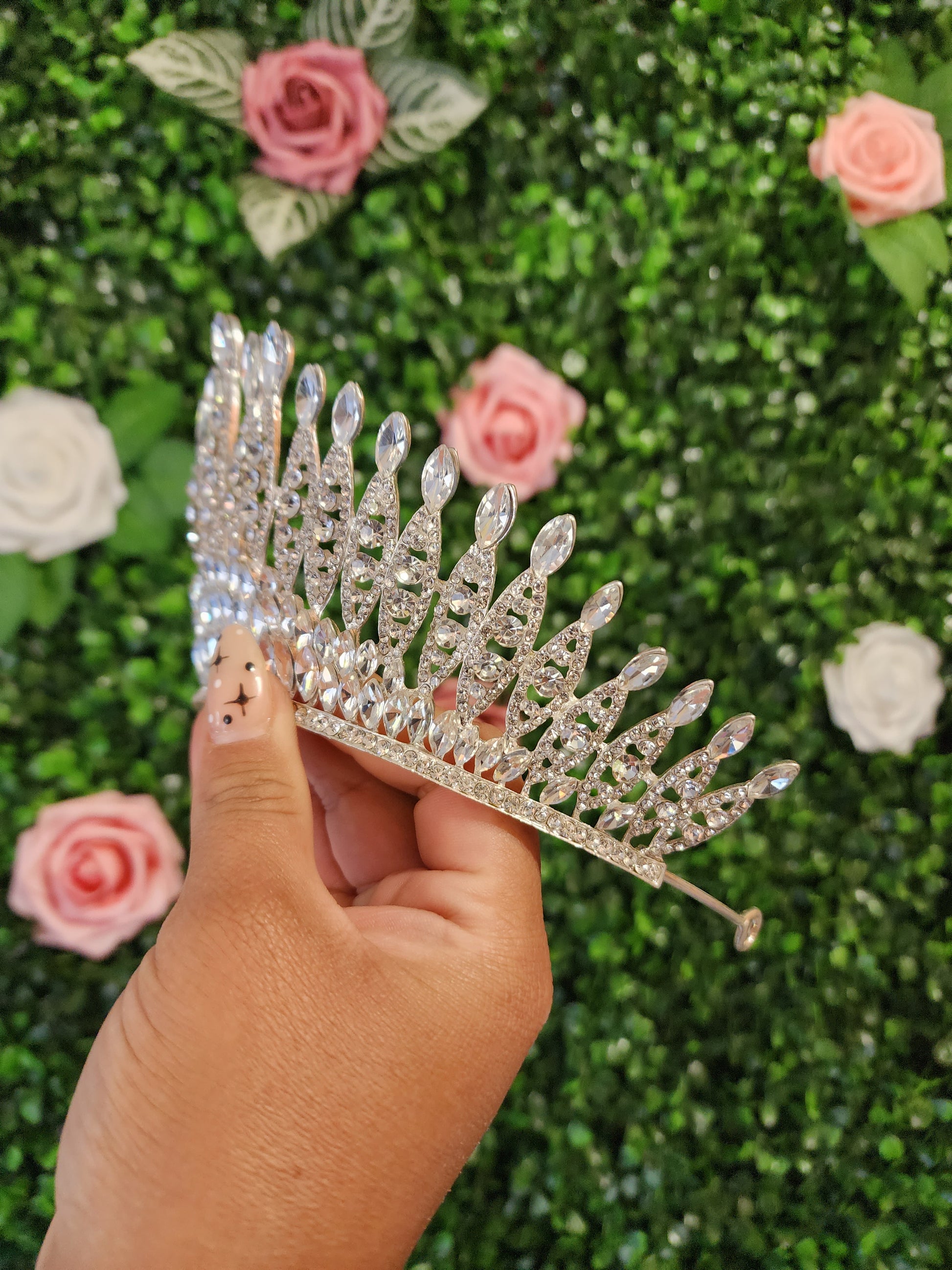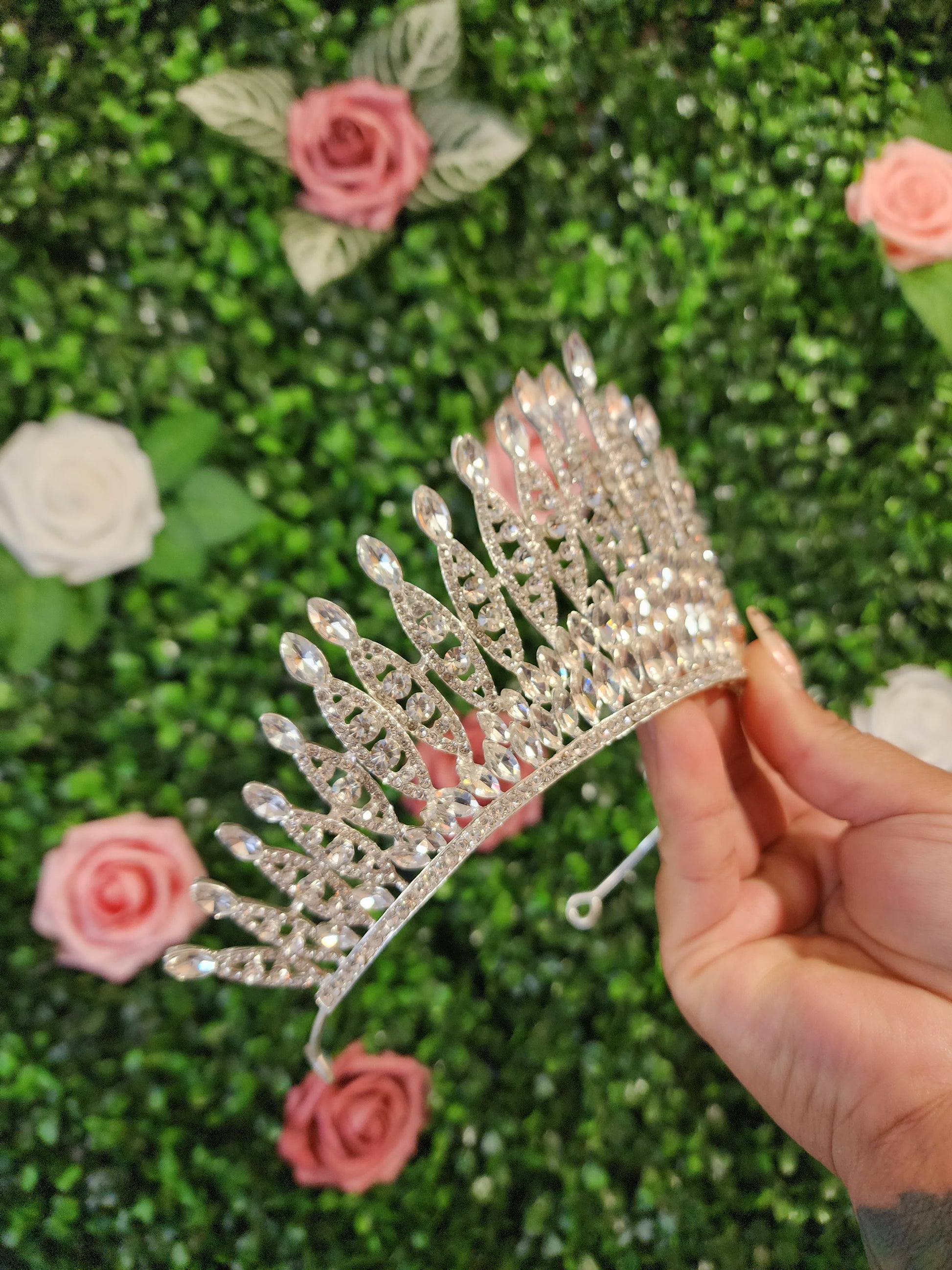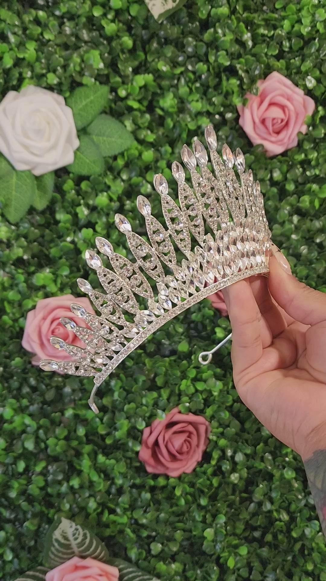 The glamorous iridescent tiara is a stunning and regal headpiece. Crafted with meticulous attention to detail, this tiara features a elaborate design that is both timeless and modern. Its most striking feature is its silver gemstones, which gives it a captivating shimmer as the light hits it from different angles.