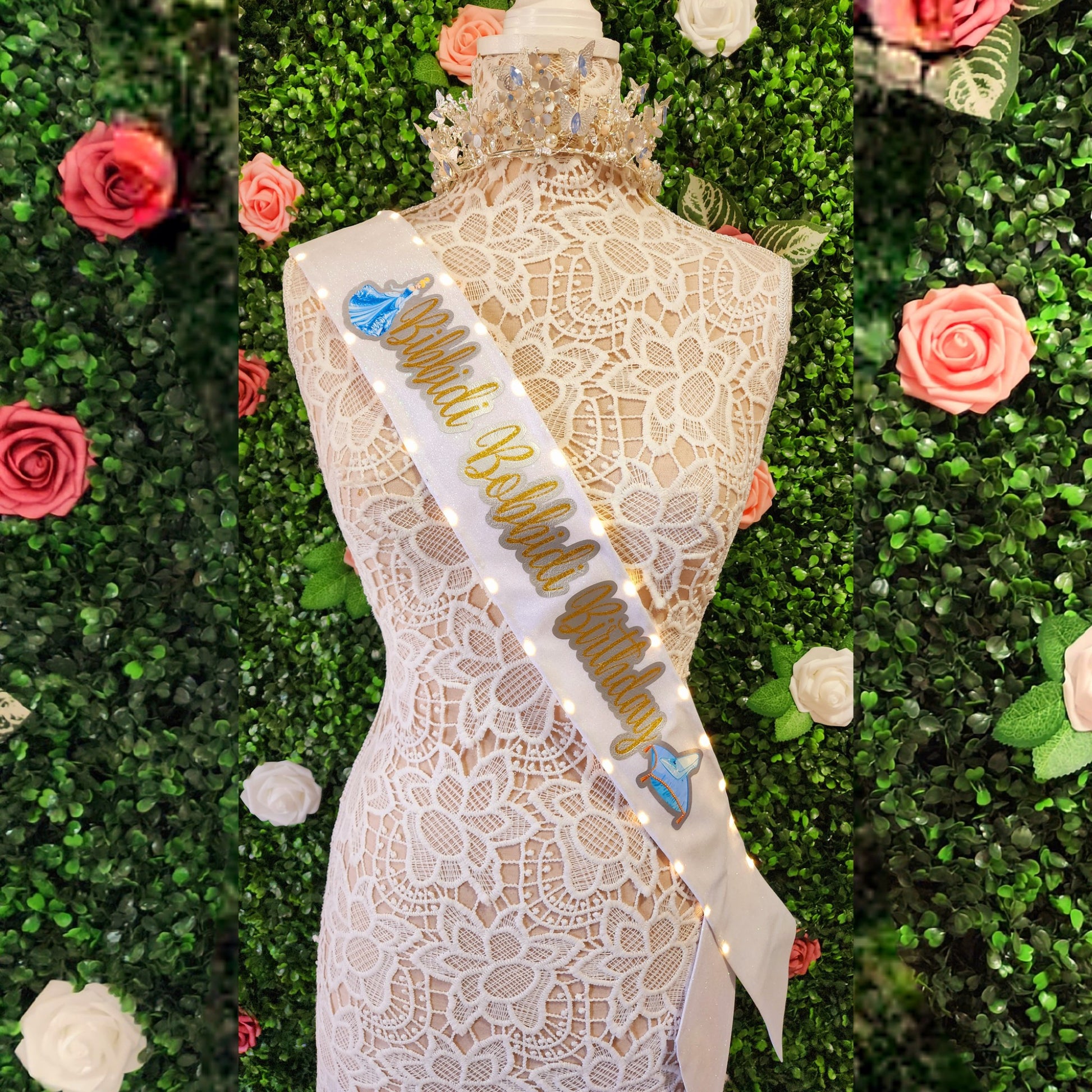 Stroke Of Midnight Princess Light-Up Birthday Sash | Light Up Birthday Celebration LED Party Accessory