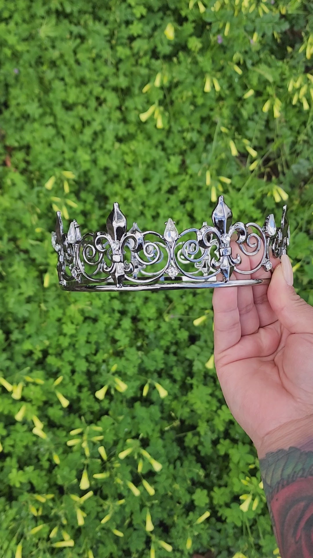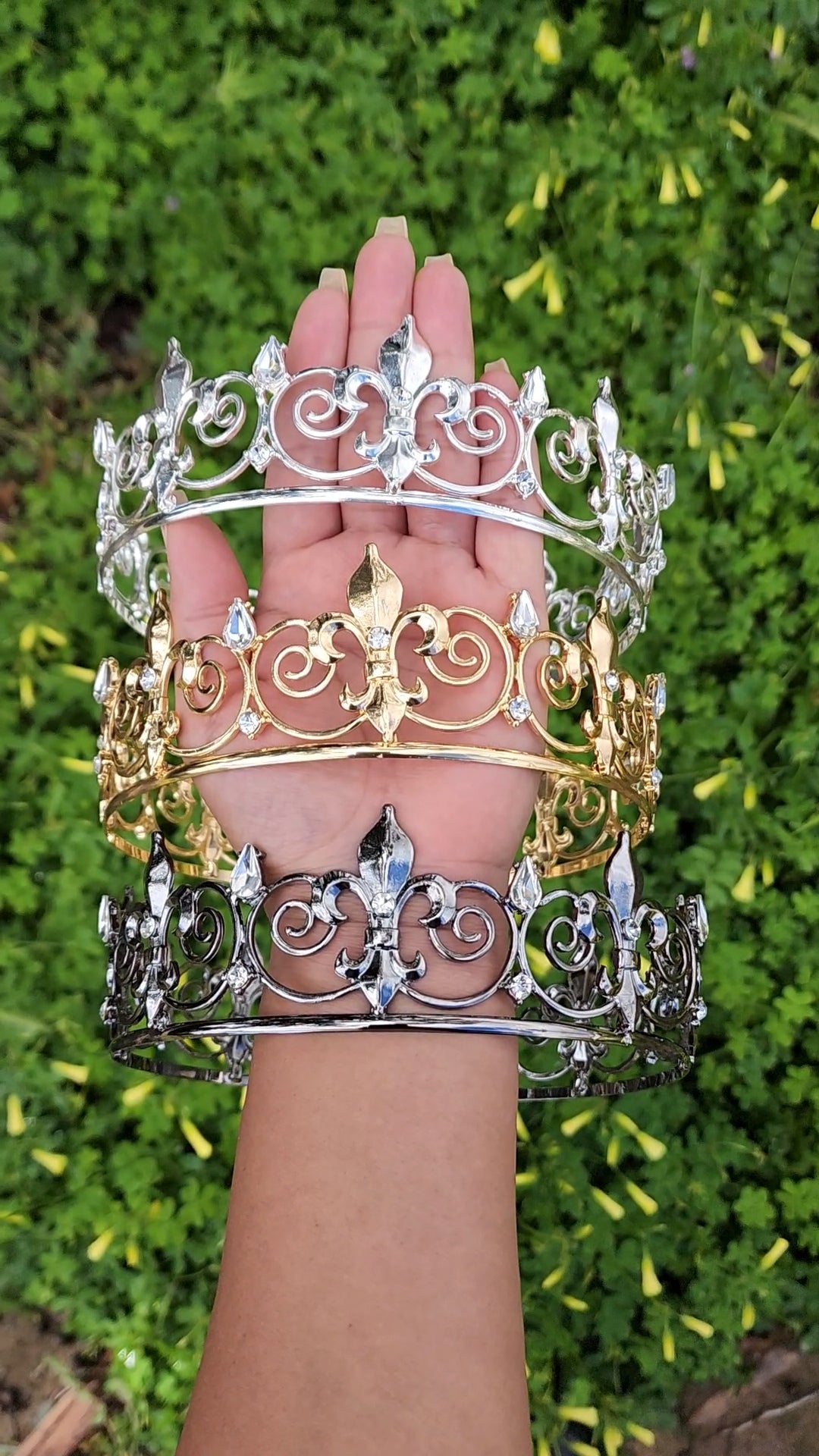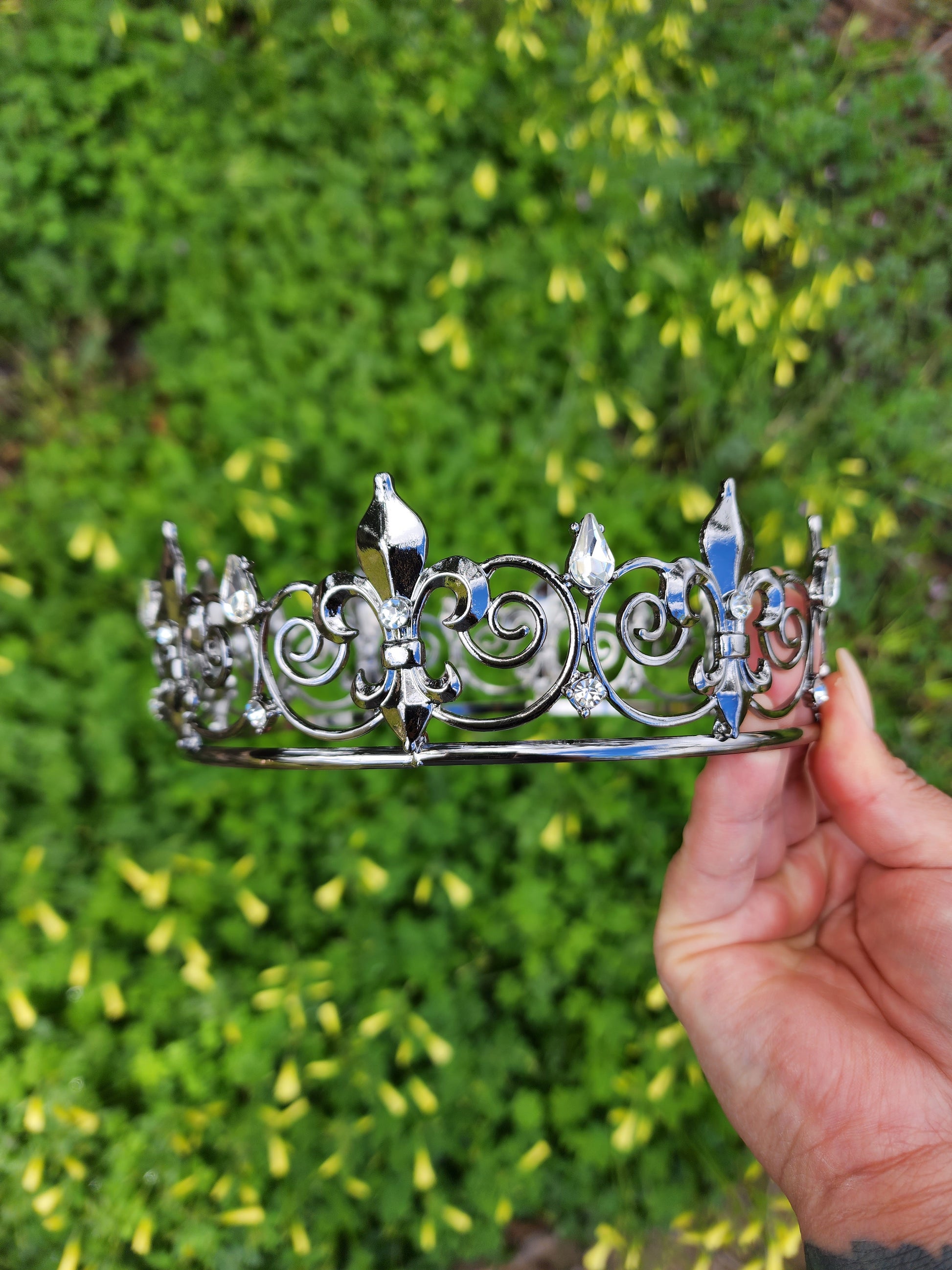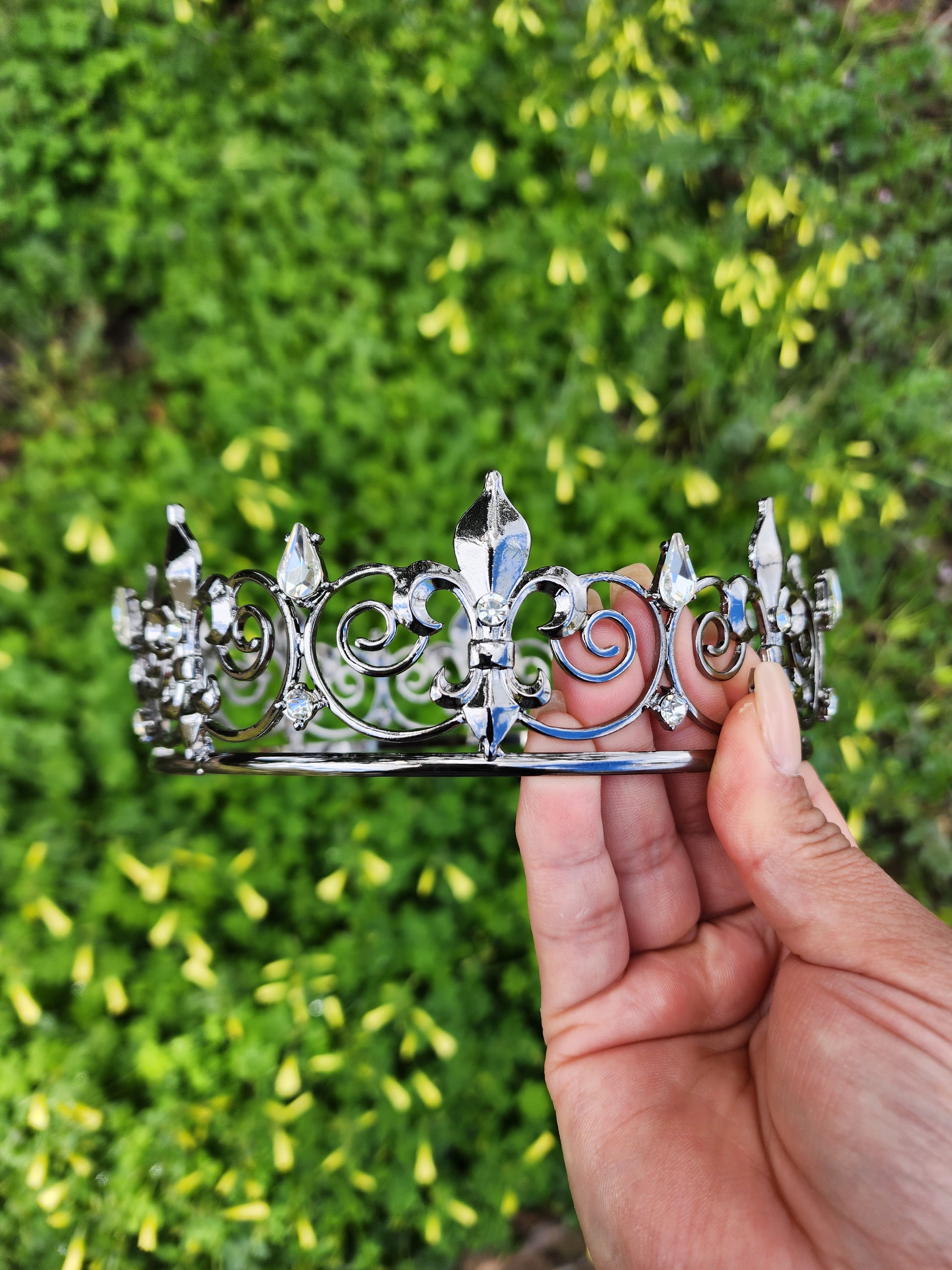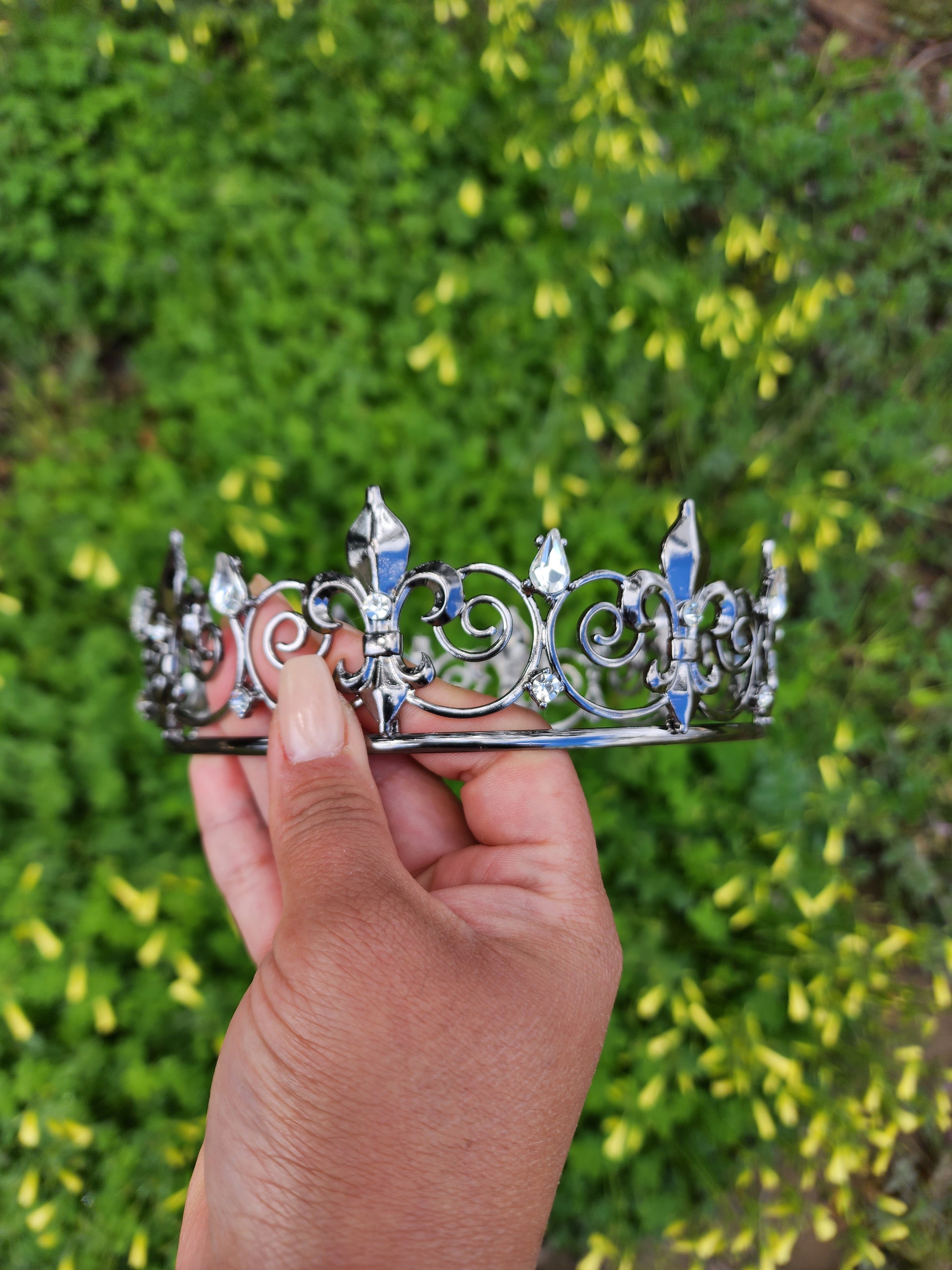 This unisex black crown with silver rhinestones is a striking and versatile headpiece that embodies a captivating fusion of boldness and elegance. This crown combines the opulence of black with the sleek and modern allure of silver rhinestones, resulting in a regal accessory that can be worn by individuals of any gender.