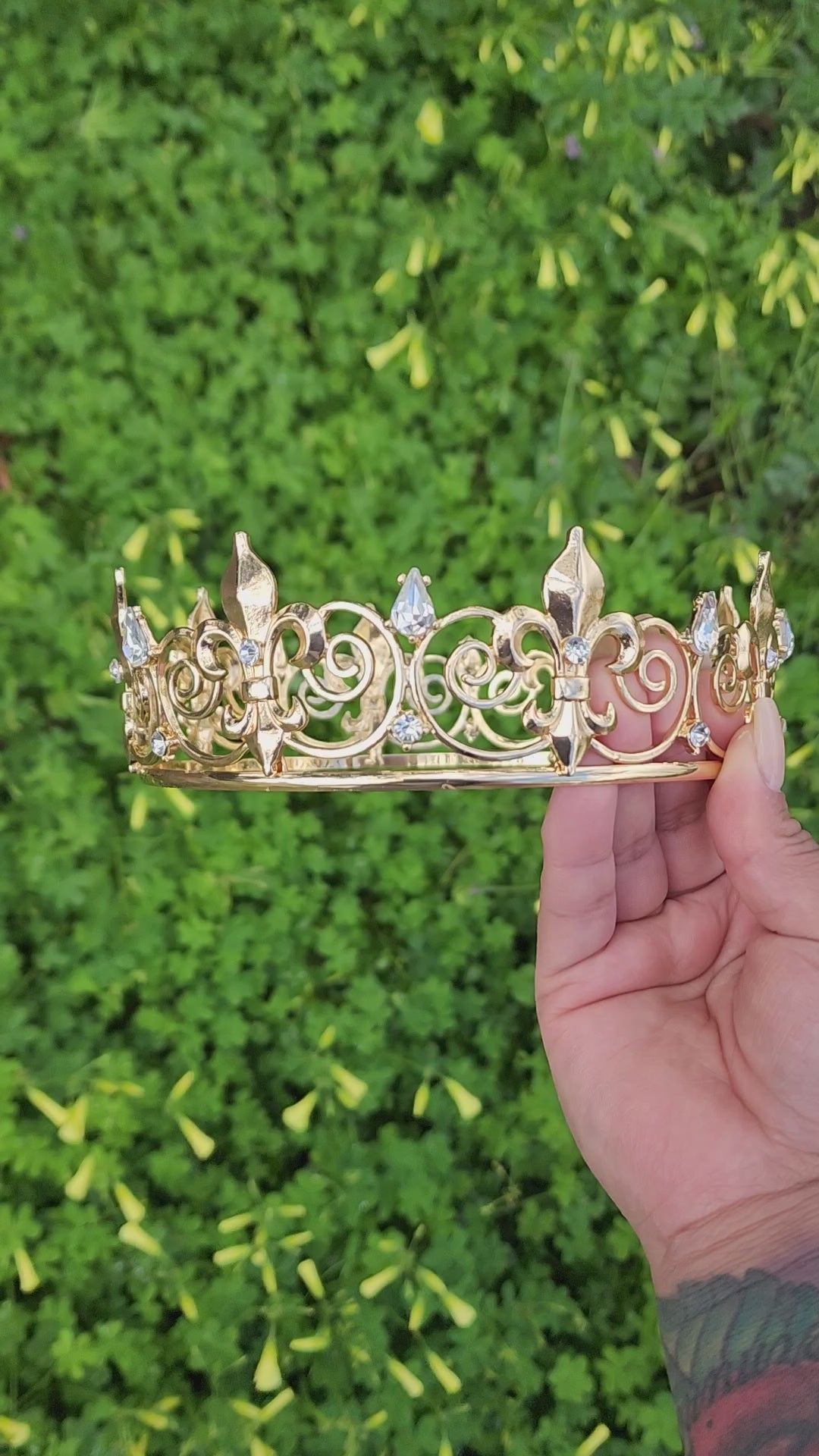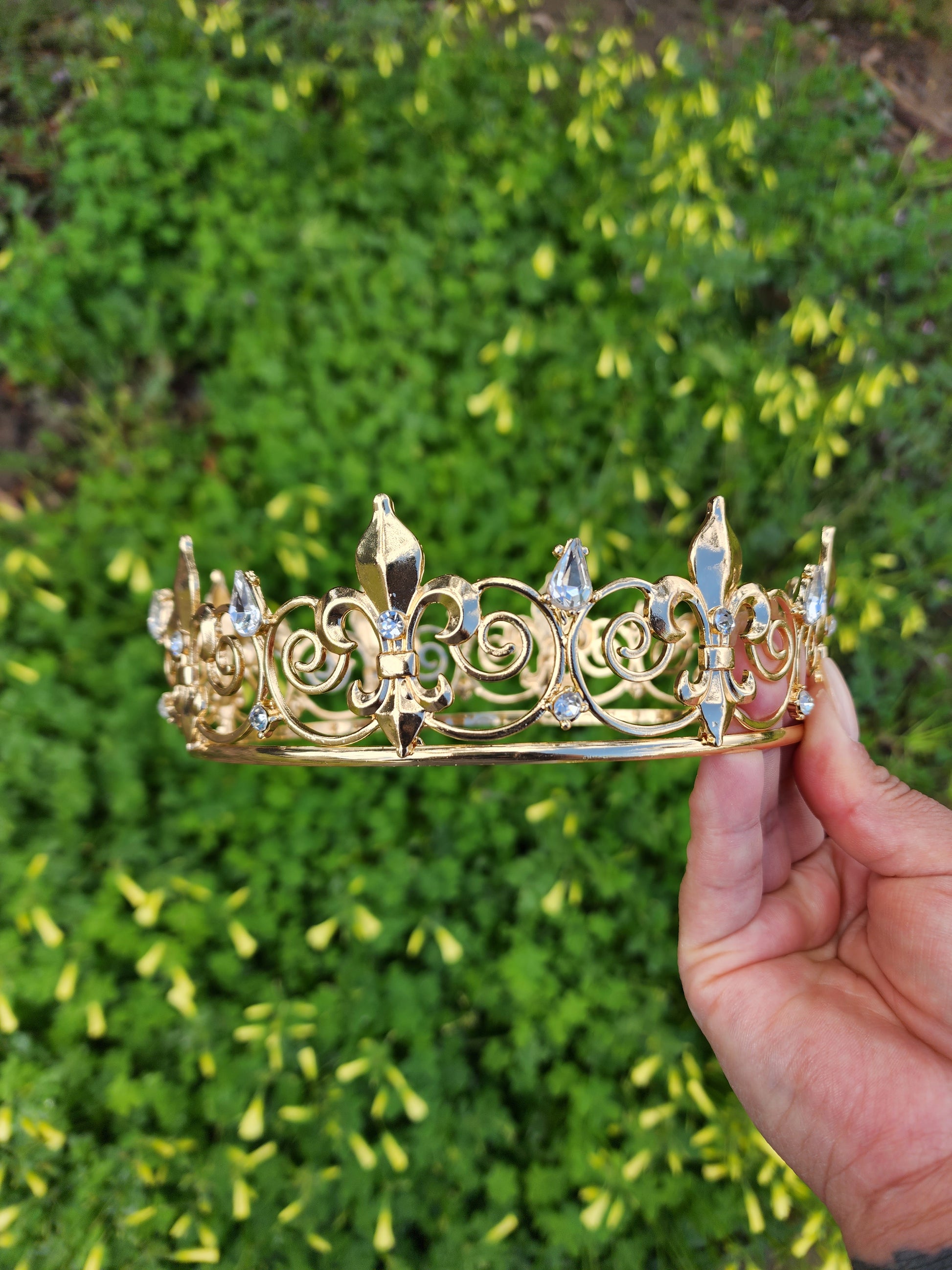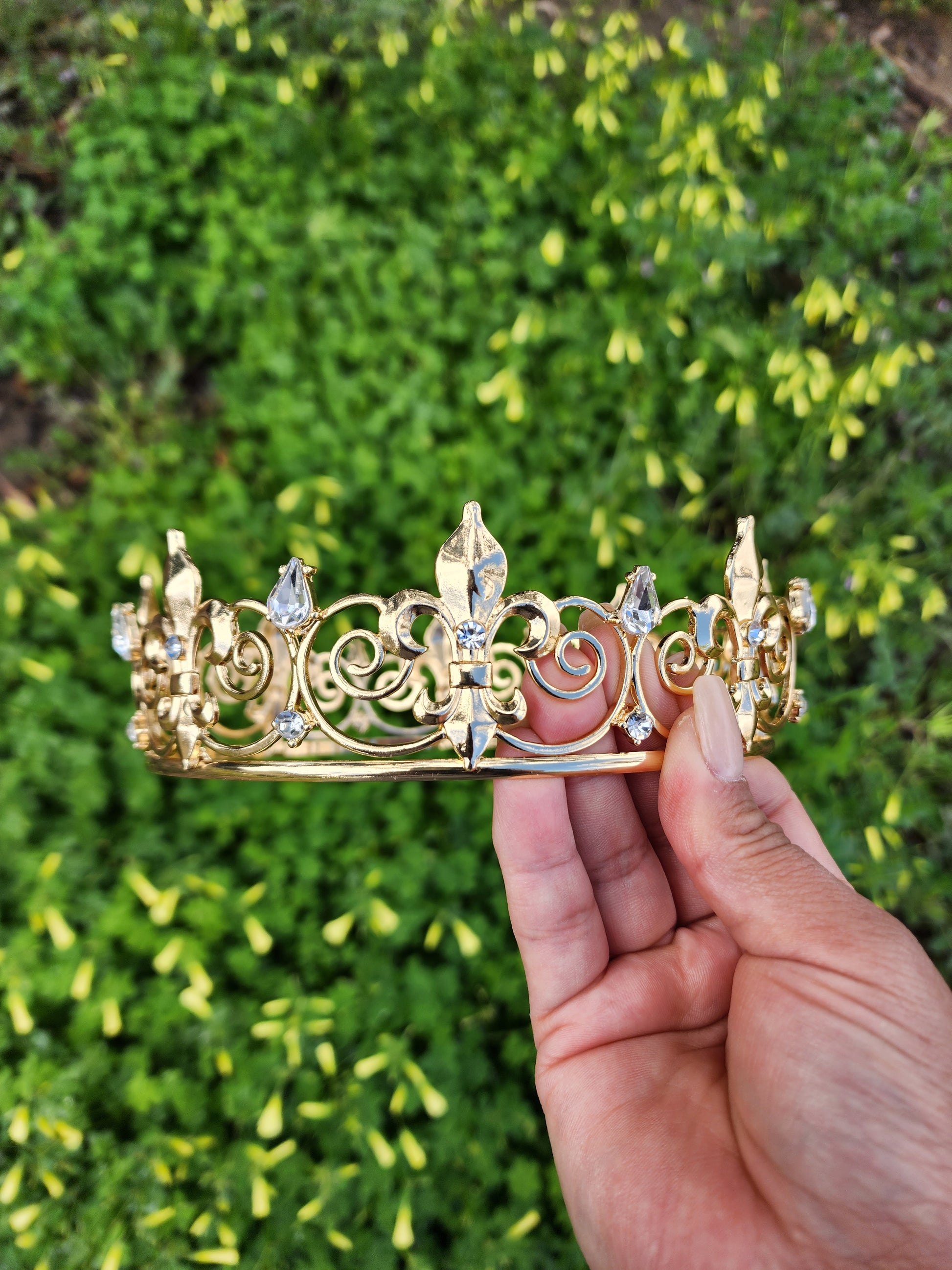 This unisex gold crown with silver is a striking and versatile headpiece that embodies a captivating fusion of boldness and elegance. This crown combines the opulence of gold with the sleek and modern allure of silver, resulting in a regal accessory that can be worn by individuals of any gender.