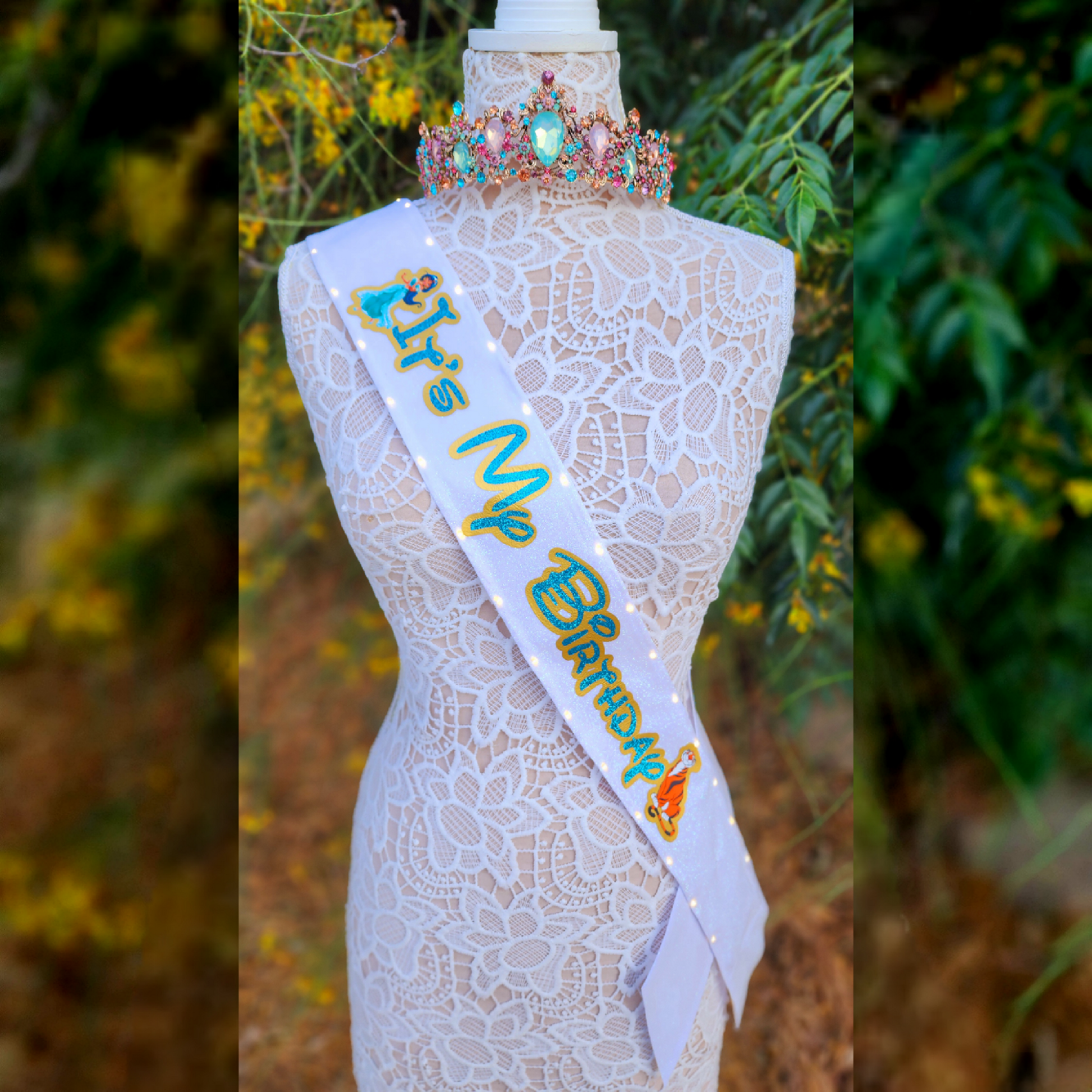 Whole New World Princess Light Up Birthday Sash | Light Up Birthday Celebration LED Party Accessory