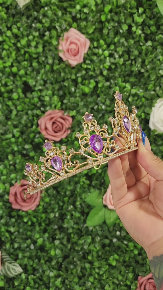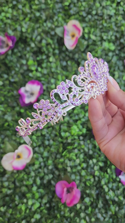 Gold Tiara with Lilac & Silver Rhinestones (277)